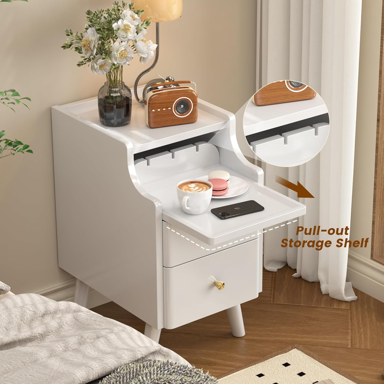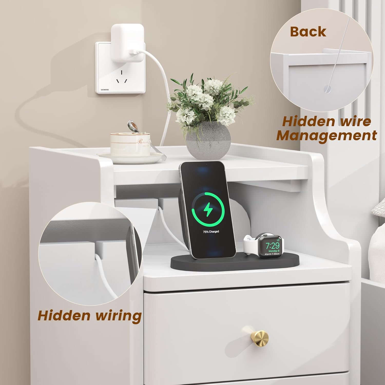 - 【Classic White Nightstand】The white color adds a classic and elegant to this nightstand. Its natural wood grain and color tone can be easily integrated into a variety of bedroom decorating styles, enhancing the overall beauty of the space