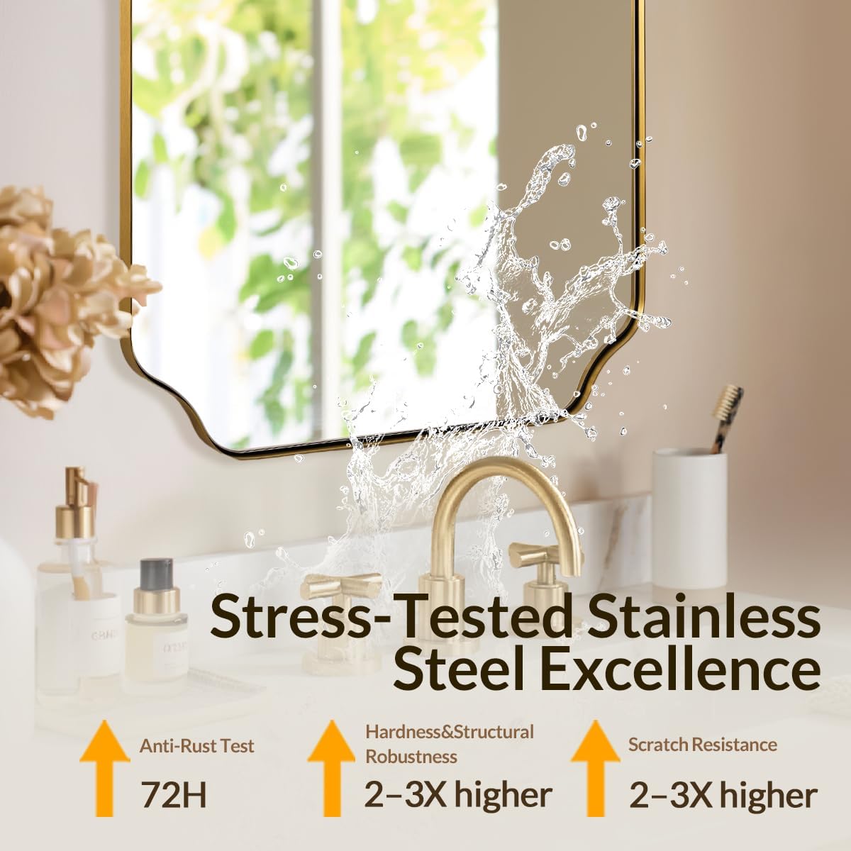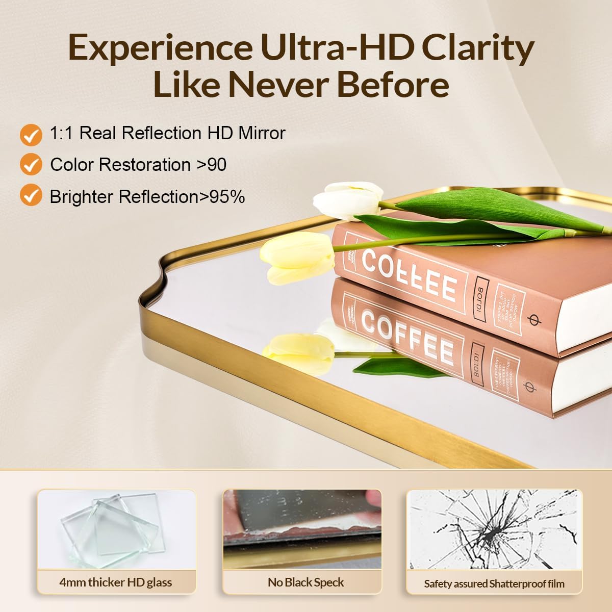- Effortless Installation & Secure Packaging: We've got you covered from shipping to setup; Our gold vanity mirror comes in a fully protected package with PE bag, poly foam, and master box; The four reinforced D - ring hanging clips make installation quick and simple, so you can enjoy your new mirror in no time