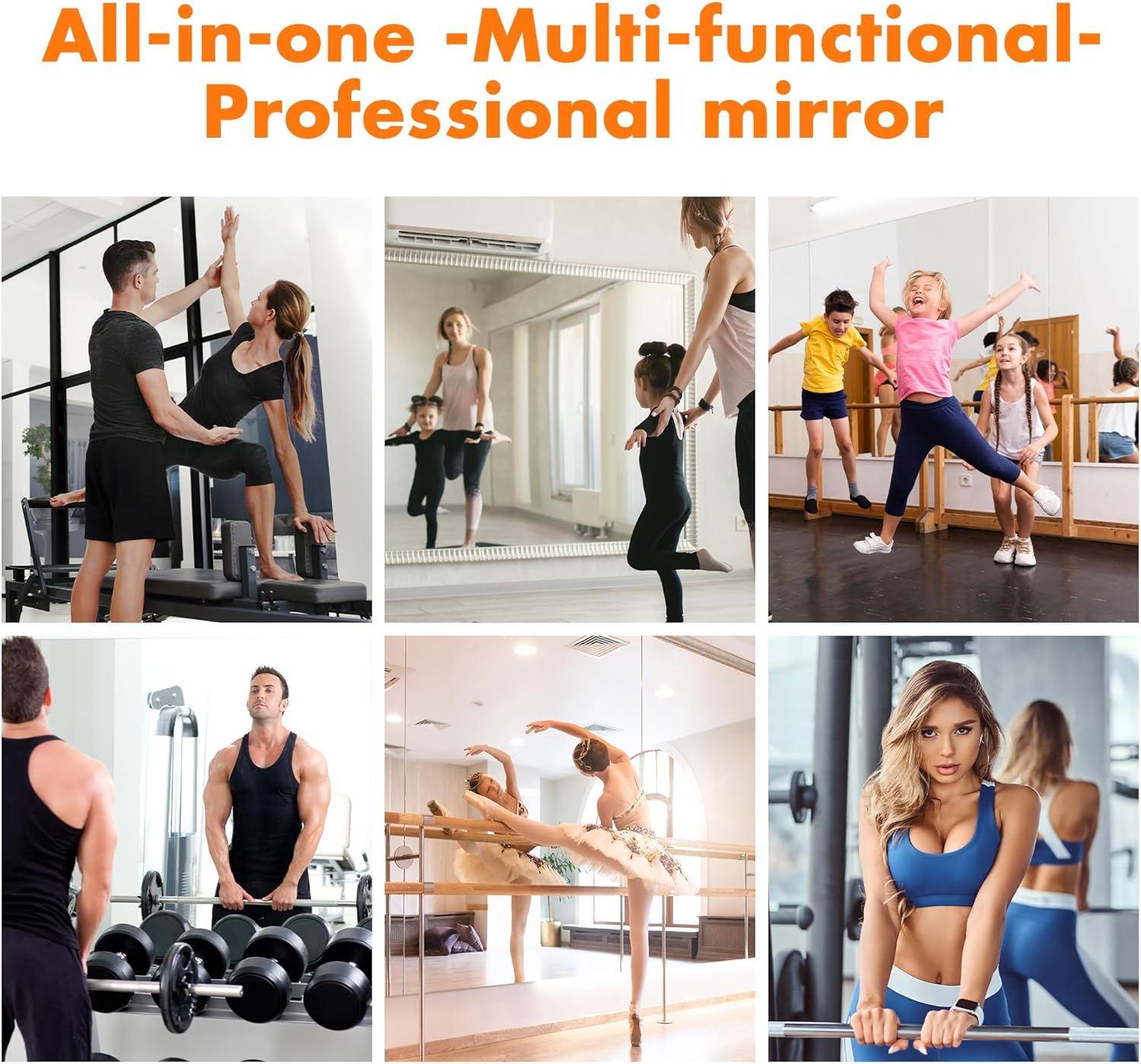 - š·[Multiple Use Scenarios] Gym mirror can be used in a variety of occasions, such as home gyms, fitness clubs, yoga rooms, garages, bedrooms, dance studios, school gyms, martial arts halls, bathrooms or any commercial venues.