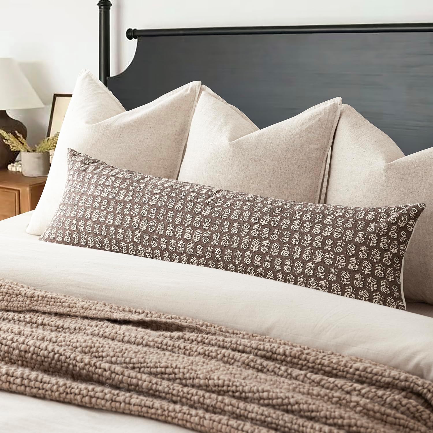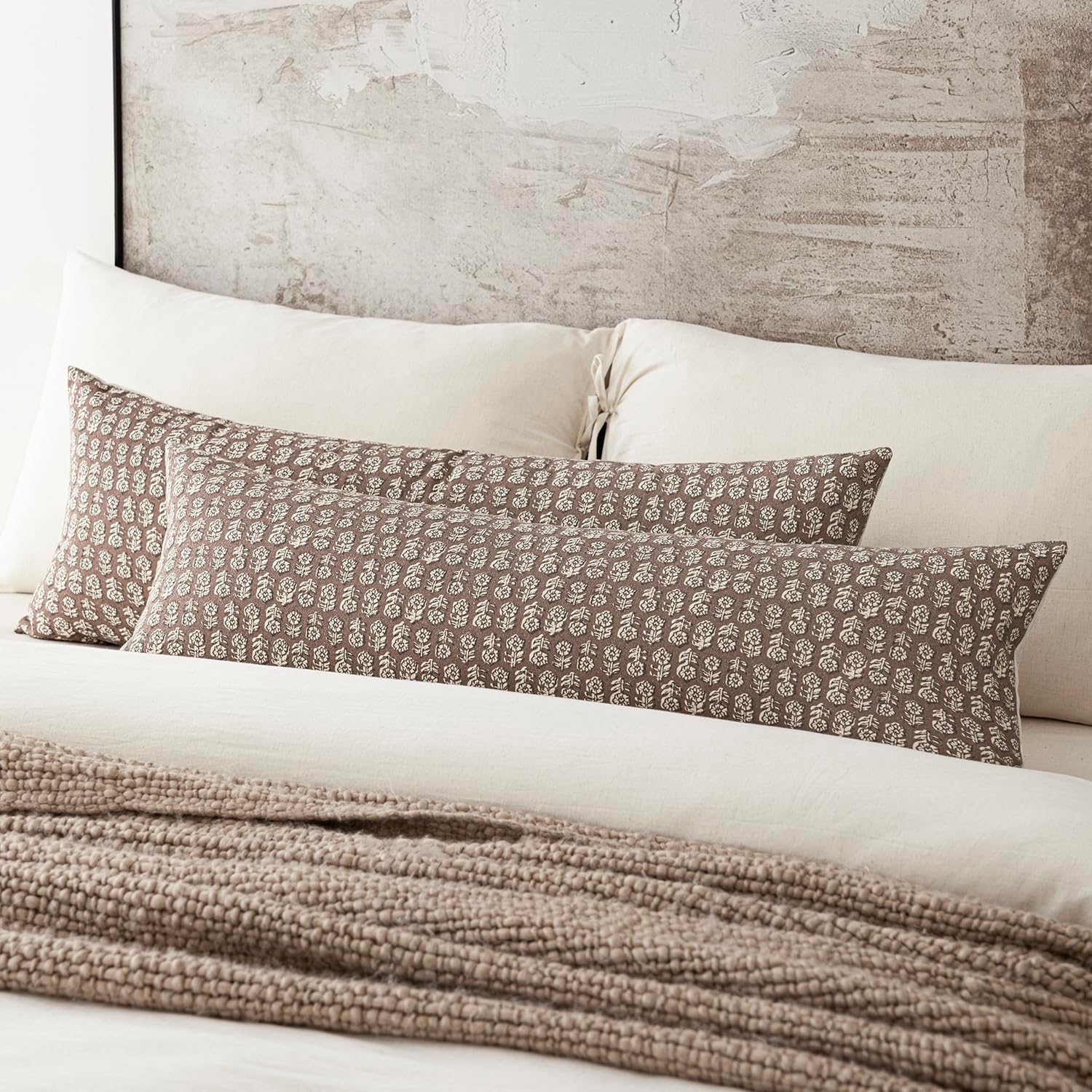 Foindtower Set of 2 Decorative Floral Long Body Lumbar Throw Pillow Covers Vintage Accent Farmhouse Cushion Covers Neutral Home Decor for Sofa Couch Chair Bedroom Living Room Outdoor,14×36 Inch,Brown