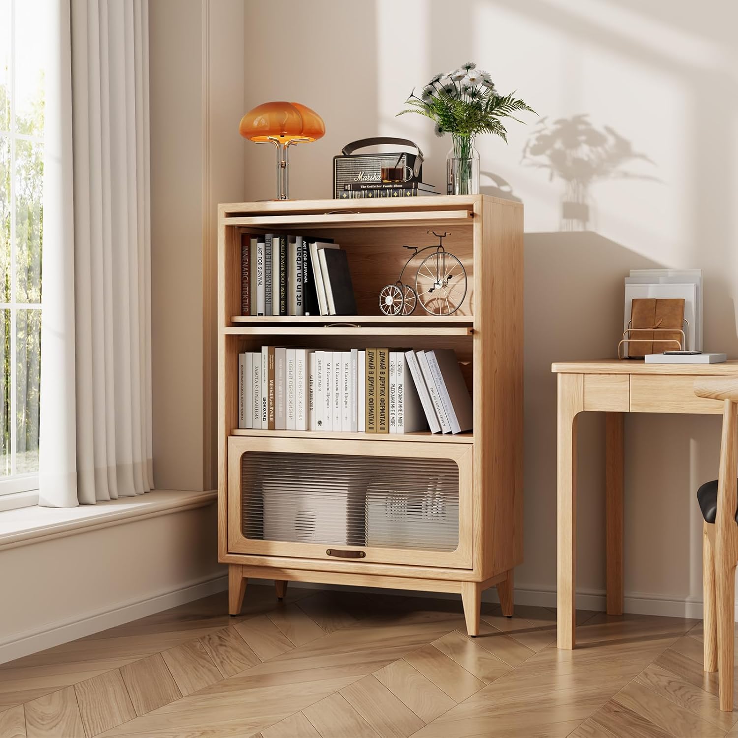 - 【Versatile & Functional】This bookshelves and bookcases features a flip-top glass door for flexible open or closed storage. Whether placed in the living room, bedroom, study, nursery, office, or kitchen, it fits seamlessly into your décor while keeping your space organized and stylish.