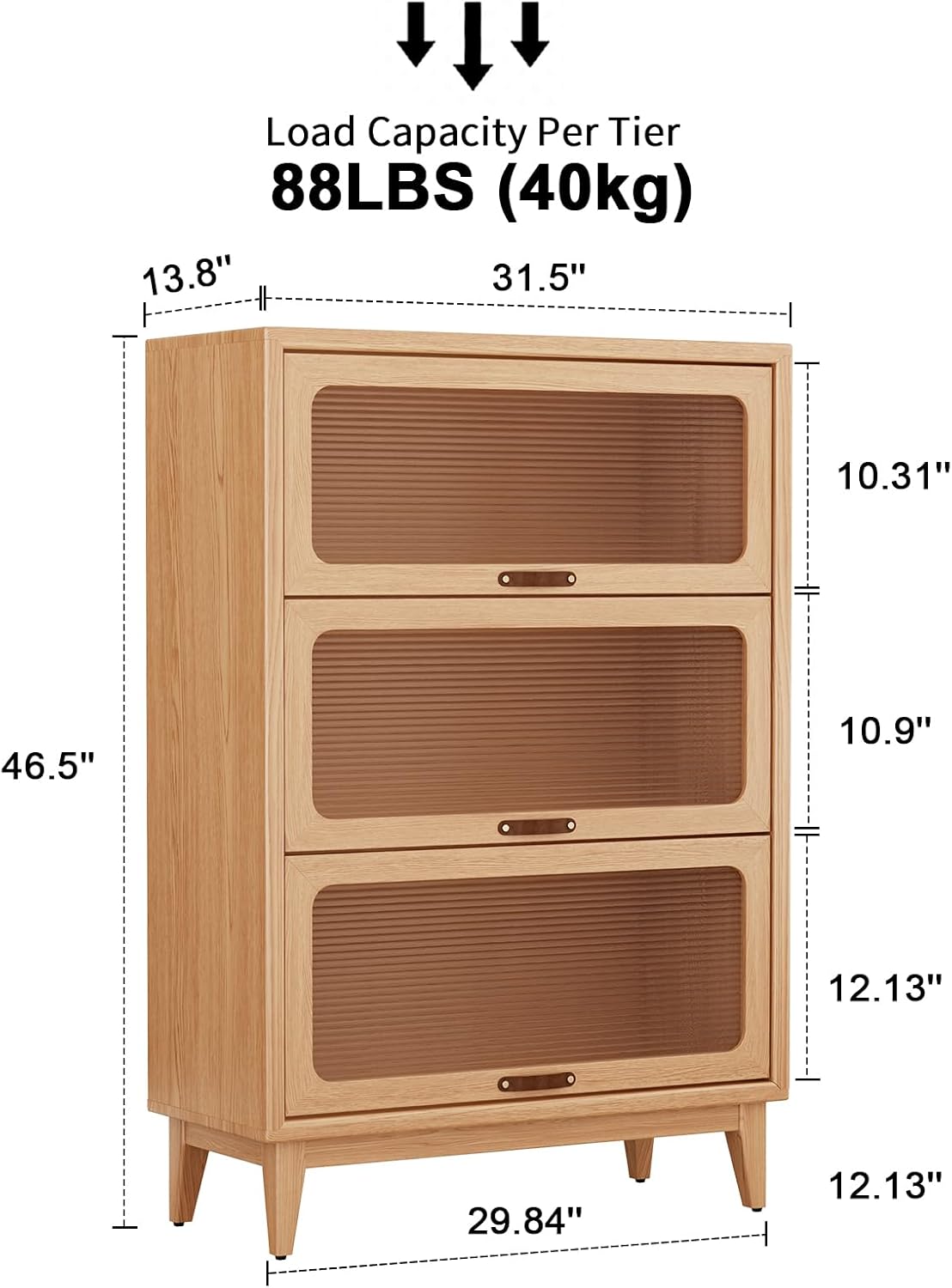 - 【Material & Dimensions】Crafted from durable rubberwood with a 20-year growth cycle, this bookcase with glass doors offers a stable structure and refined natural grain. It brings a perfect blend of elegance and nature to your home. Dimensions: 13.8”D x 31.5”W x 46.5”H.