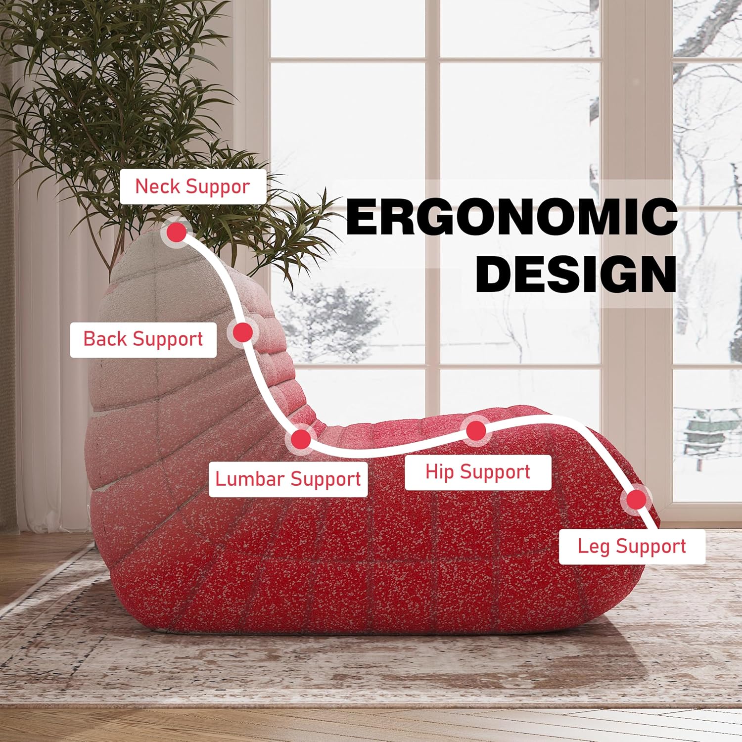 - 【Ergonomic Design】-Designed with your comfort in mind, the bean bag chair features a thoughtful ergonomic design that provides exceptional support for your neck, back, lumbar, hip and leg region. The loveseat high-elastic memory foam filling conforms to your body, offering targeted support and ensuring a cozy sitting experience.