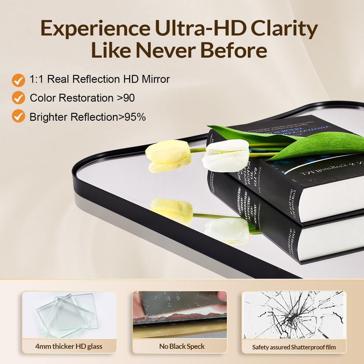 - High Definition Clarity: Experience unparalleled clarity with our mirrors; Crafted from 4mm HD glass and antioxidant coating for a lifelike image without distortion; The explosion proof film provides an added layer of safety ensures that it breaks without splashing