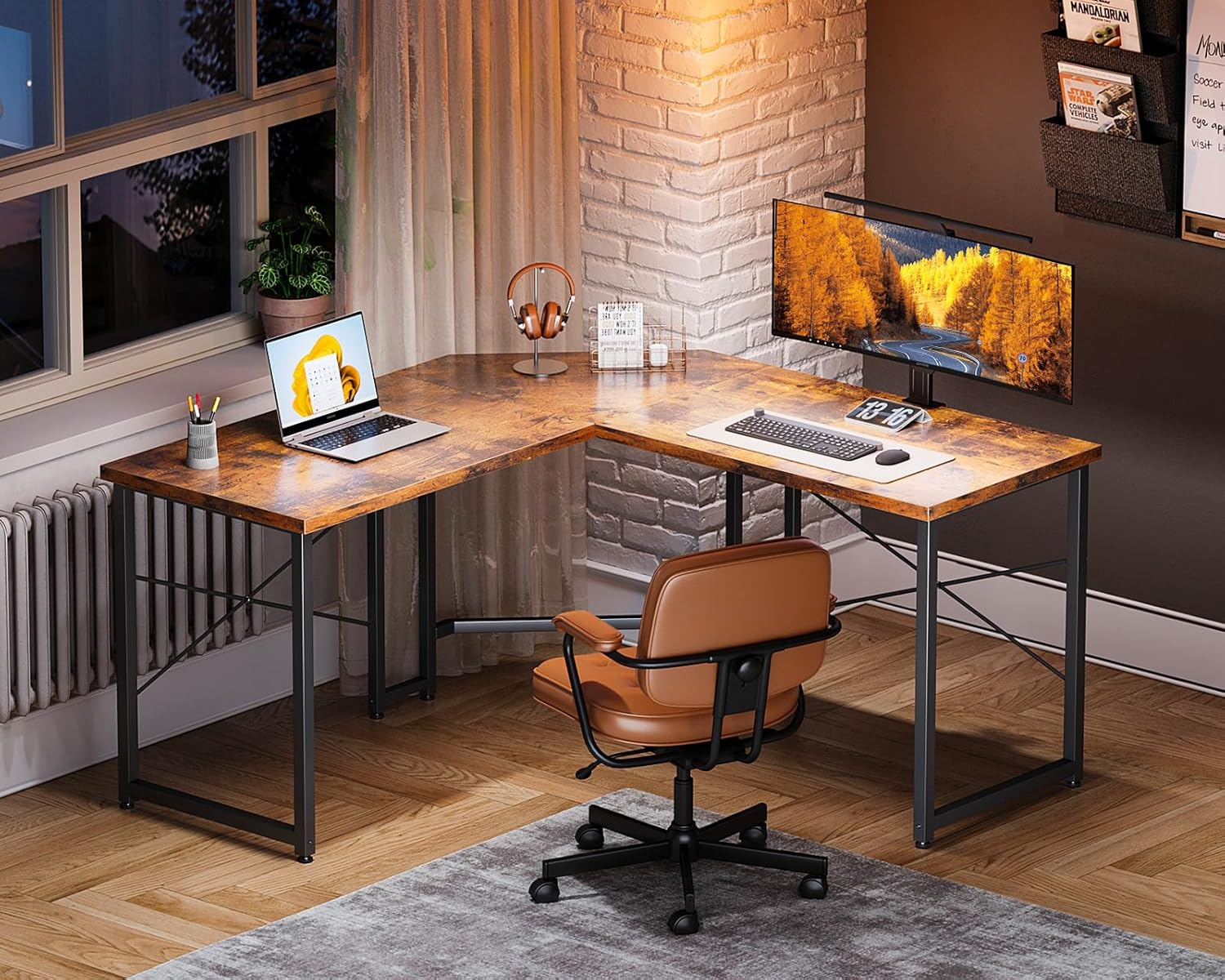 Casaottima L Shaped Gaming Desk, Corner Gaming Table for Home Office, Computer Desk Sturdy Writing Workstation for Small Space, Easy to Assemble, 51 inch, Rustic Brown