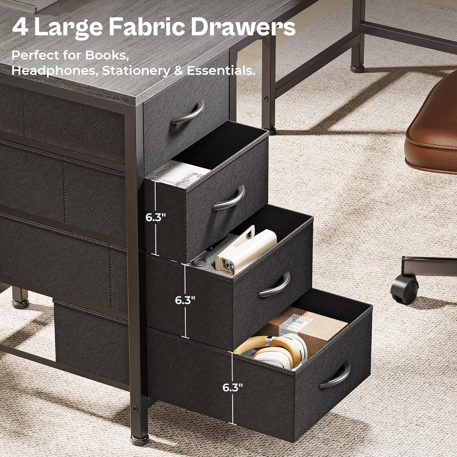 - 【Desk with 4 Fabric Drawers and Adjustable Shelves】This l desk comes with 4 fabric drawers for your everyday essentials, plus 2 adjustable storage side shelves. Whether you're storing books, printer paper, or office supplies, you can customize the space to match how you work with this computer desk with drawers