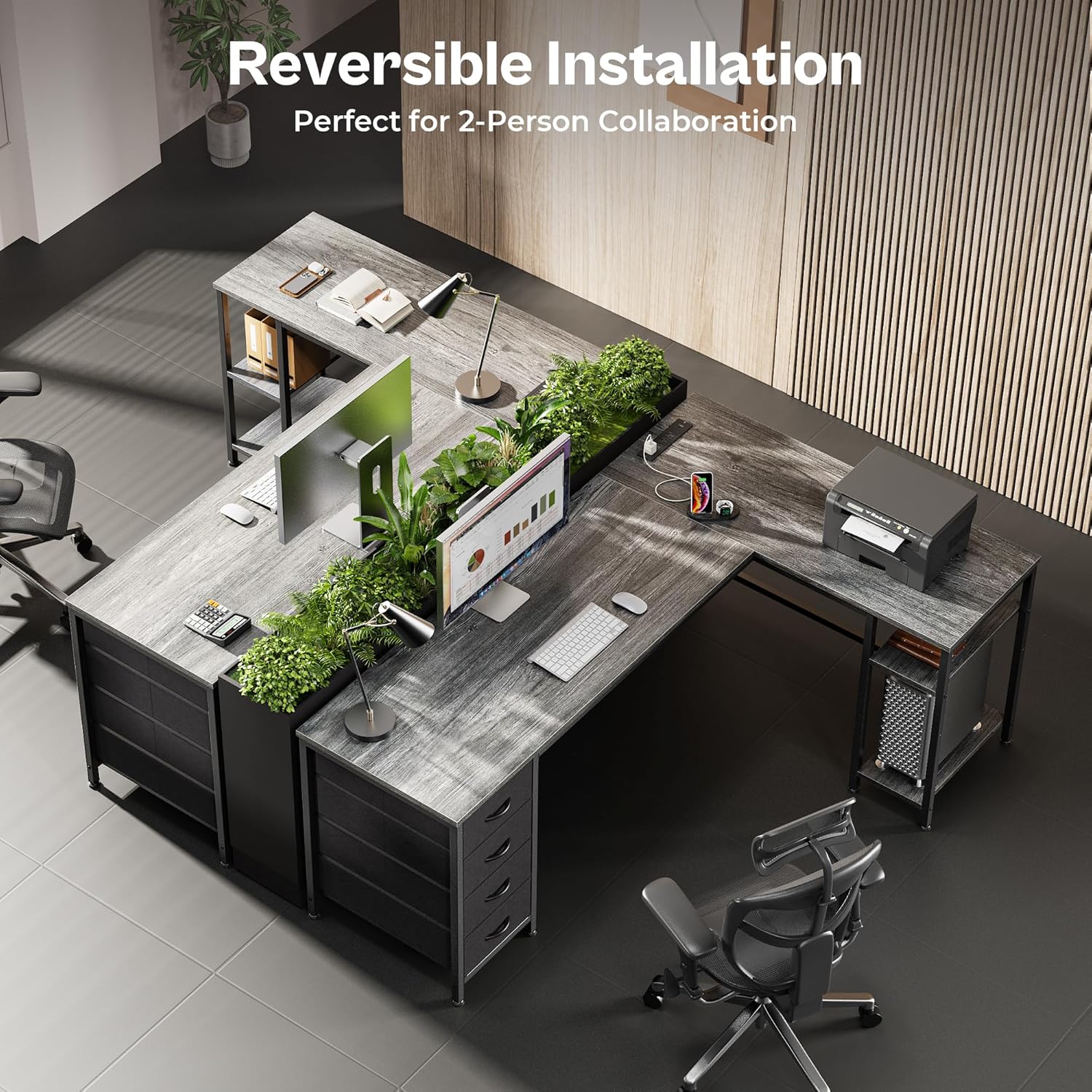 - 【Reversible Home Desk with Larger Legroom】Reversible L-shaped design lets you set up the work desk or gaming desk left or right to fit your space. Want a shared workspace or gaming room? Combine l shaped desks with storage for a roomy 2-person setup — great for home offices or open workspaces with lots of legroom