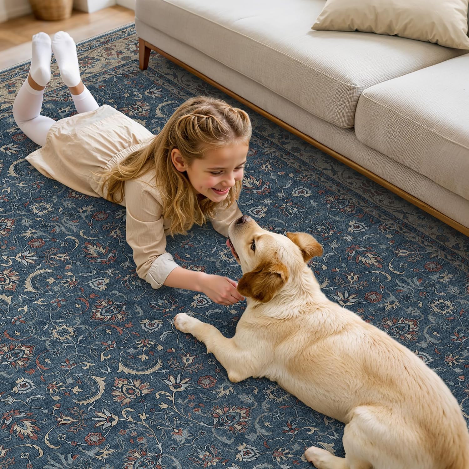 - Kids & Pets Friendly:Our rug is specifically designed to accommodate the needs of families with pets and children, featuring a low pile for easy care and durability. It effectively resists the accumulation of pet hair and withstands everyday wear and tear, making it a prime choice for active homes.