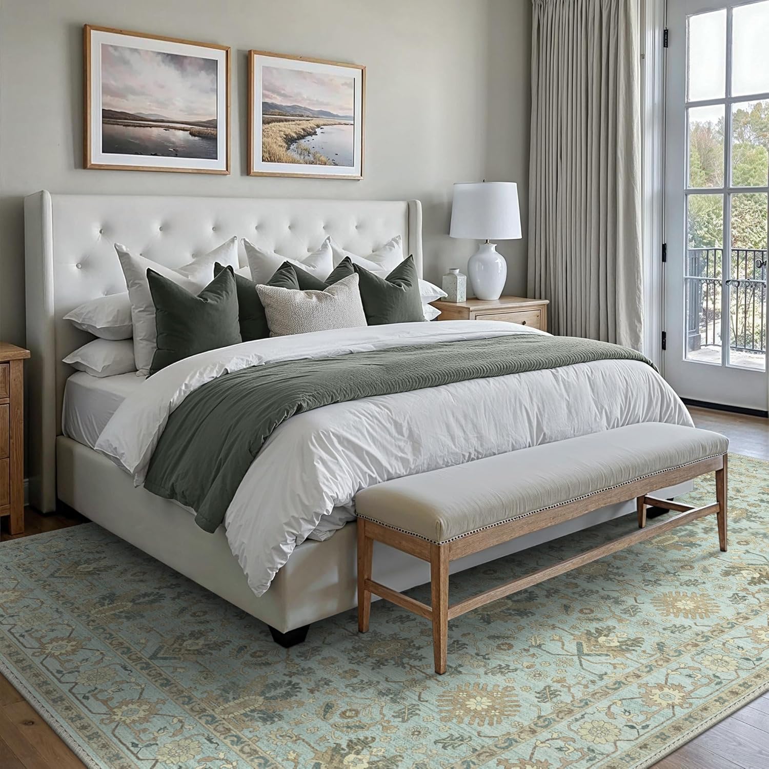 - Timeless Vintage Design:This misty blue rug elegantly combines a timeless floral design with a muted color palette to infuse your living space with a touch of vintage charm. Its unique texture and patterns add a layer of sophistication and comfort to any room, making it a versatile addition to both modern and traditional decors.