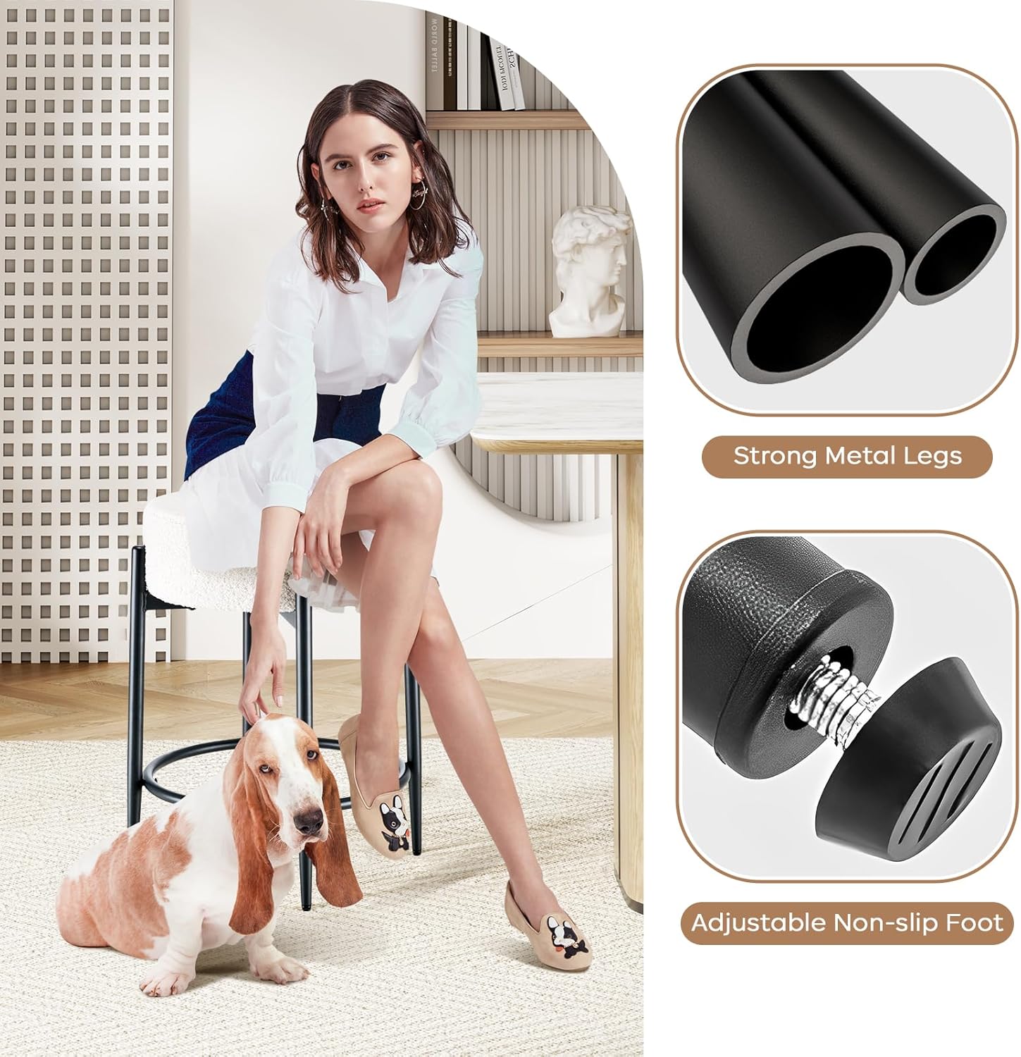 - Modern Style: The backless kitchen height stools silhouette embodies timeless modern aesthetics. Non-slip pads on the bottom of the stool legs ensure a secure hold during use and prevent scratches on floor surfaces, blending elegant aesthetics with everyday practicality