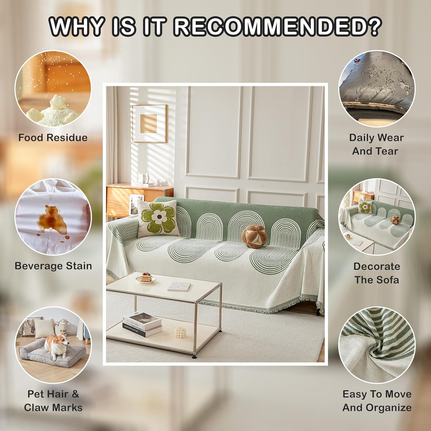 - γππππππ ππππππ πππππγSofa cover with beige and green, color collocation simple atmosphere, giving a warm and comfortable feeling, pattern using simple lines of arc elements, full of design sense, with fringe lace at the bottom, add romantic and casual atmosphere, other directions full package design, beautiful and durable, extend the service life.