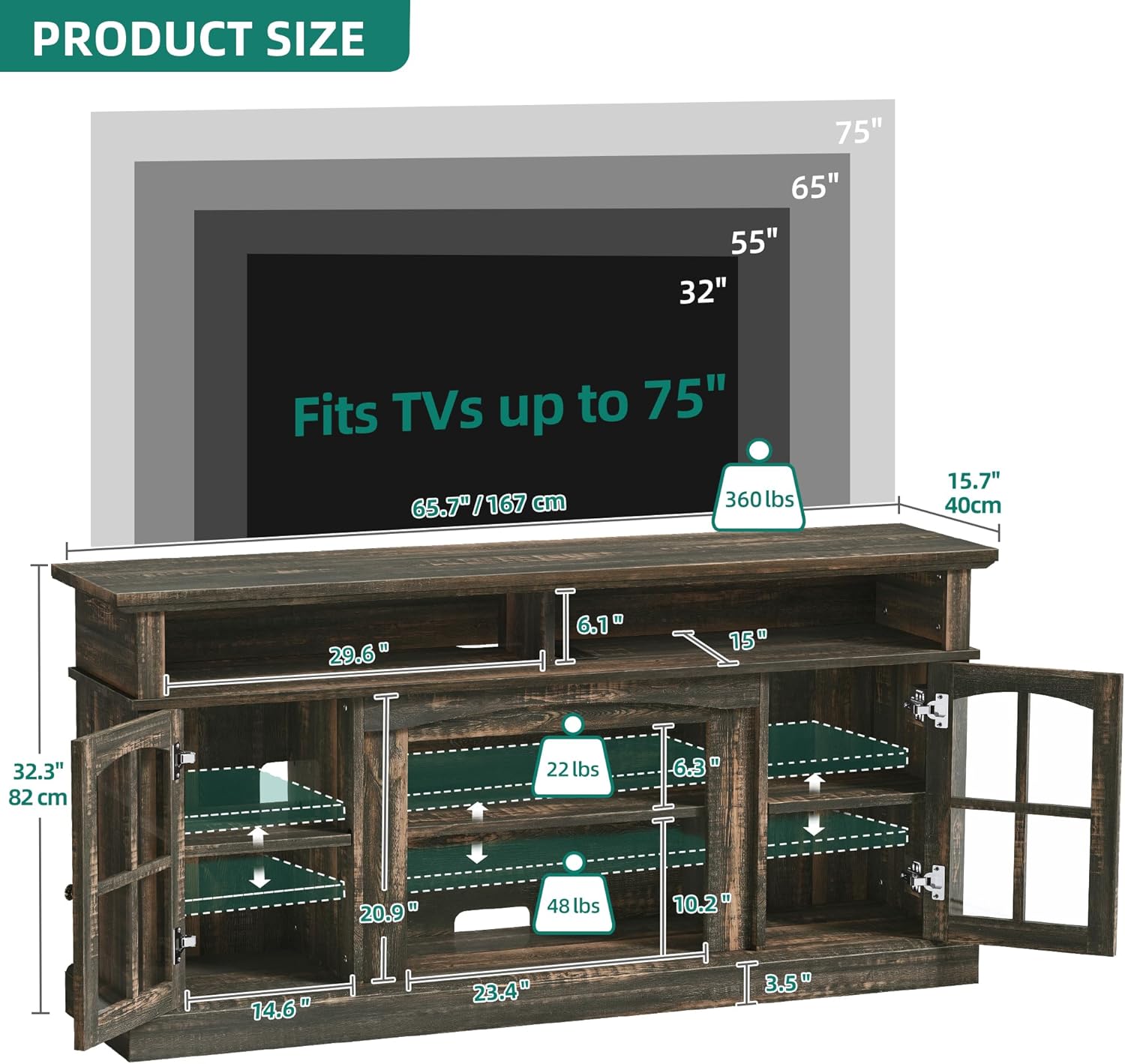 - Adjustable Shelves: Farmhouse TV stand made from high-quality engineered wood for long-lasting durability, with 3 adjustable shelves for flexible storage items
