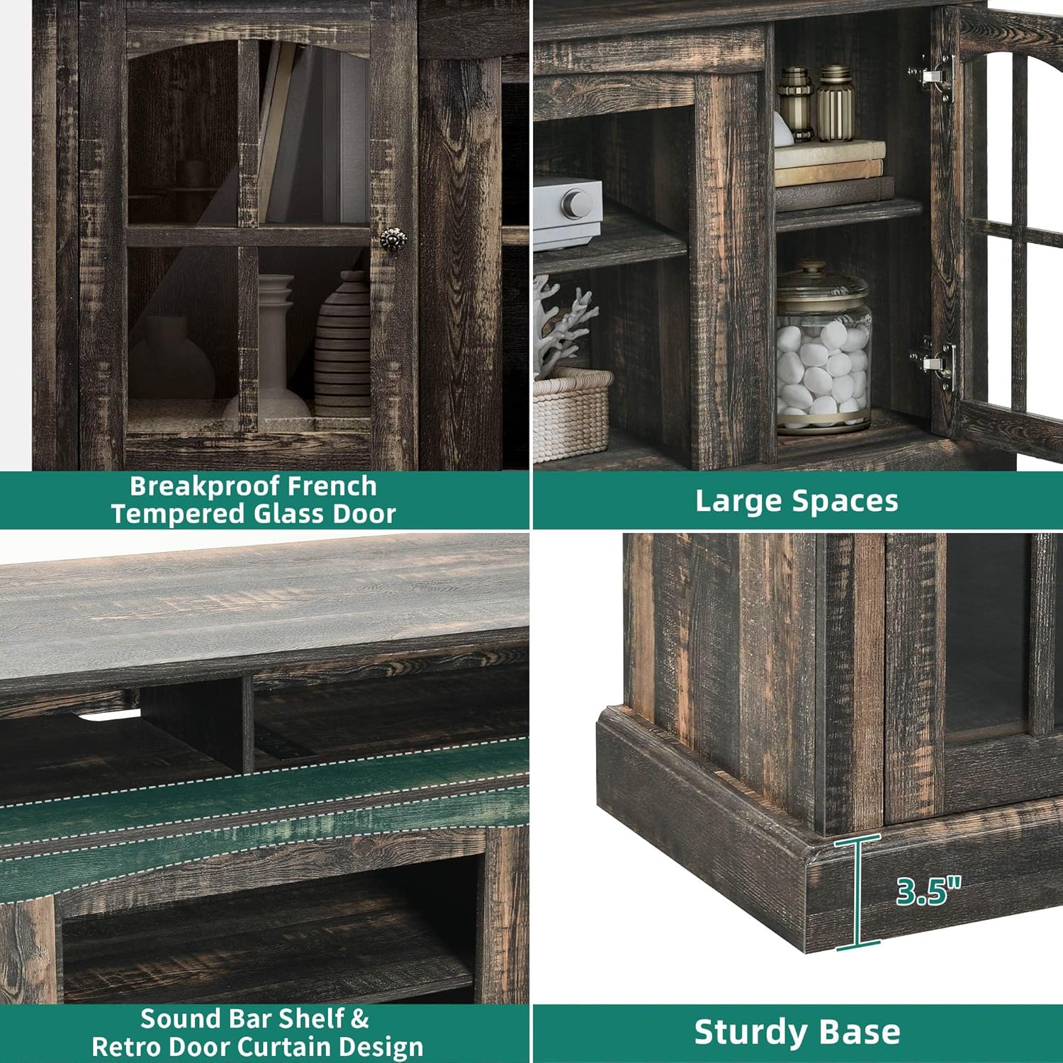 YITAHOME LED Farmhouse TV Stand for 75 Inch w/Outlets, Modern Entertainment Center with Glass Doors and Adjustable Storage Shelves, Media Console TV Cabinet for for Living Room, Dark Rustic Oak