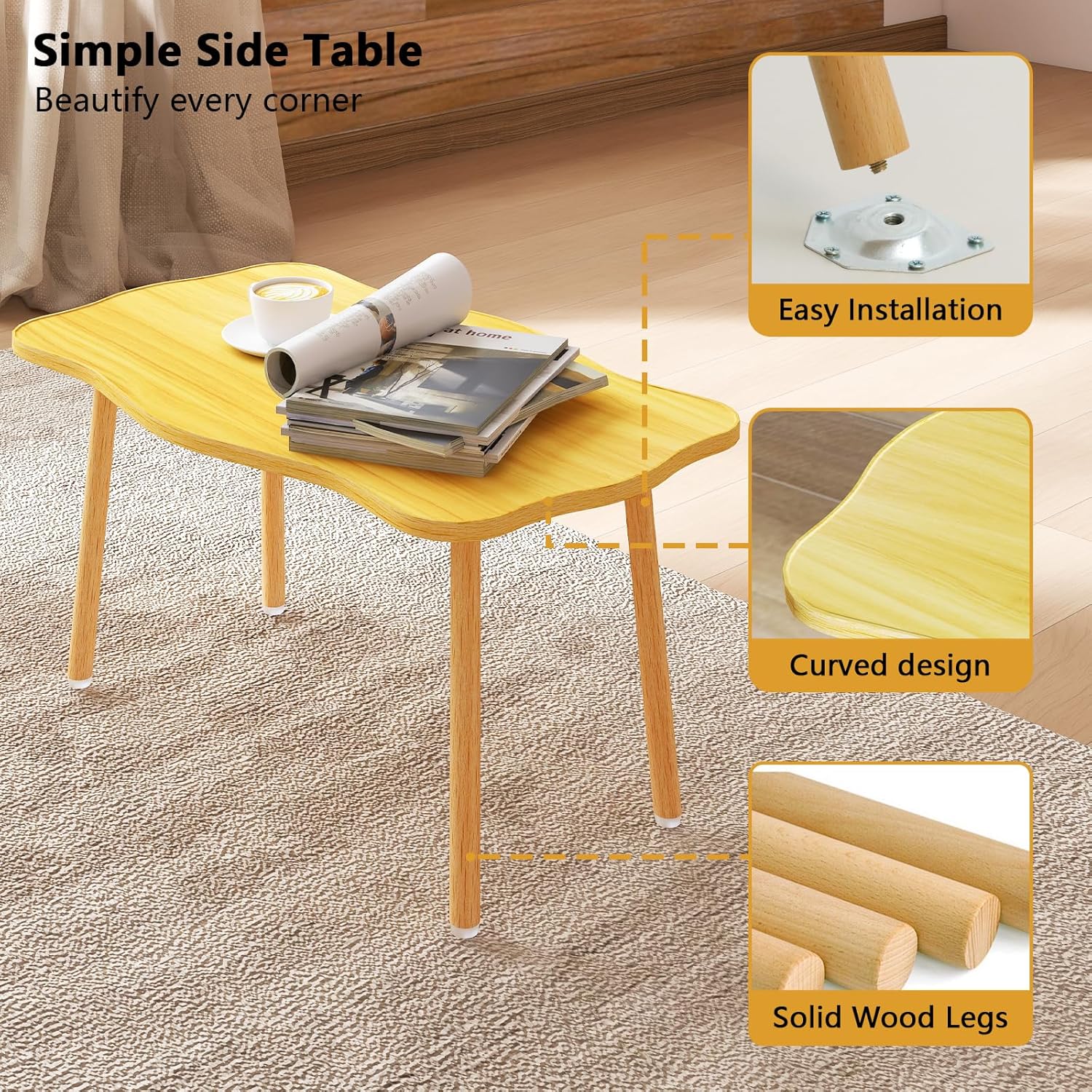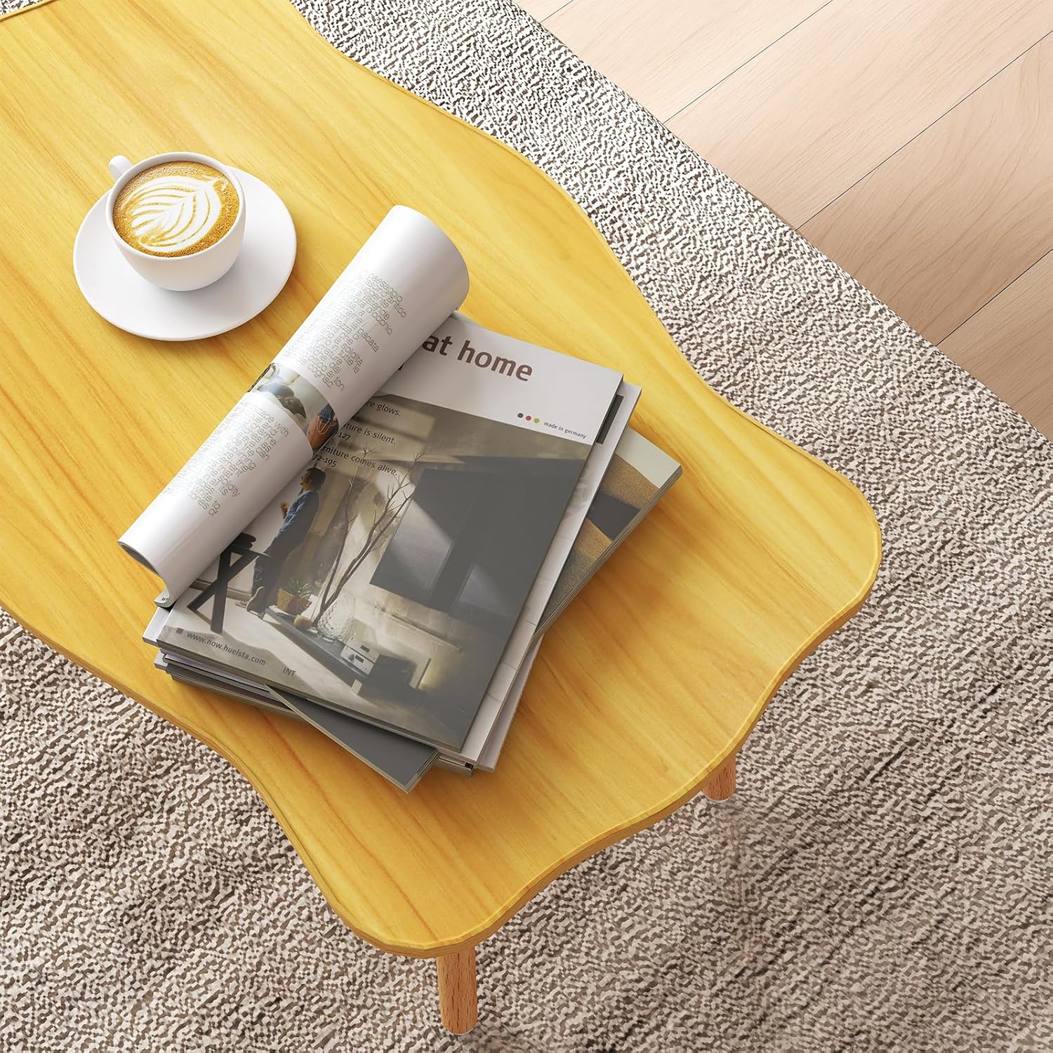 Cookie Coffee Table Low Table with 4 Solid Wood Sturdy Legs, Floor Table Desk for Sitting on The Floor, Storage and Living Room Furniture (Natural)