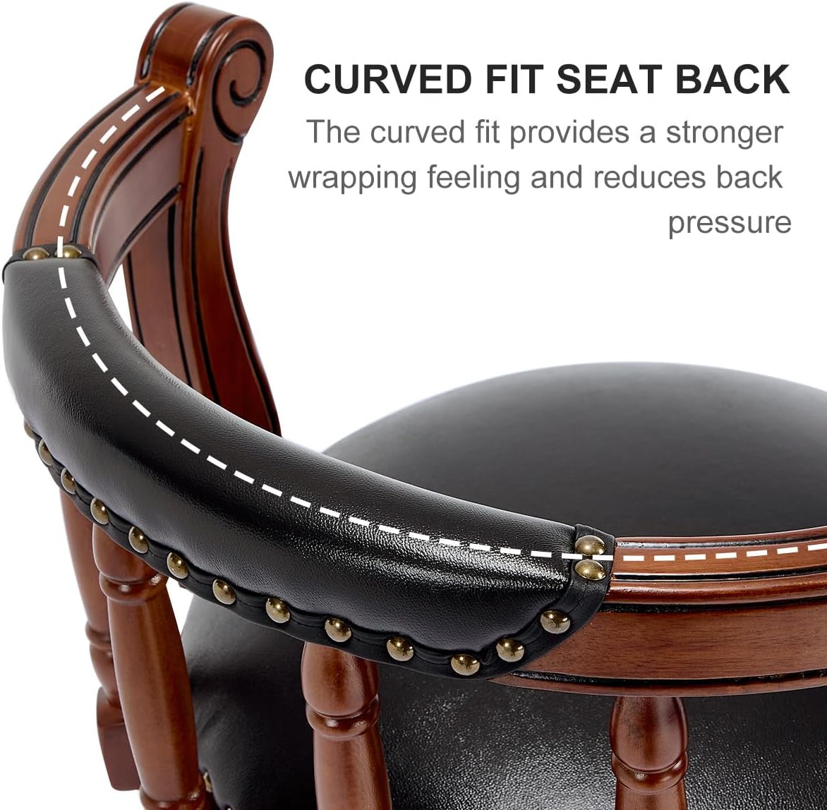 Cow top Leather Wooden Bar Stools, 360 Degree Swivel Bar Height Chair with Backs for Home Kitchen Counter, Morden Chair Barstools (Black-2pc, Counter Height-Seat Height 26”)