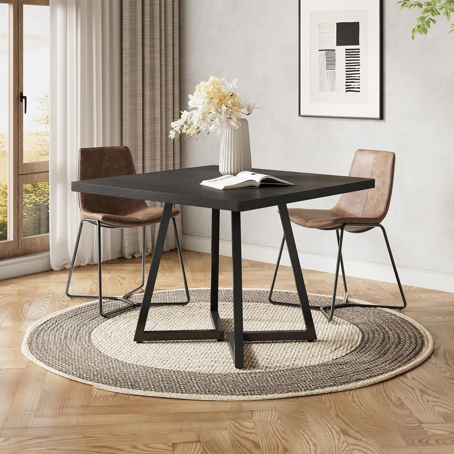 - Sturdy and Stylish: Constructed with a beautiful black wooden top and sleek metal legs, this dining table effortlessly blends aesthetics with durability, promising longevity and lasting visual appeal