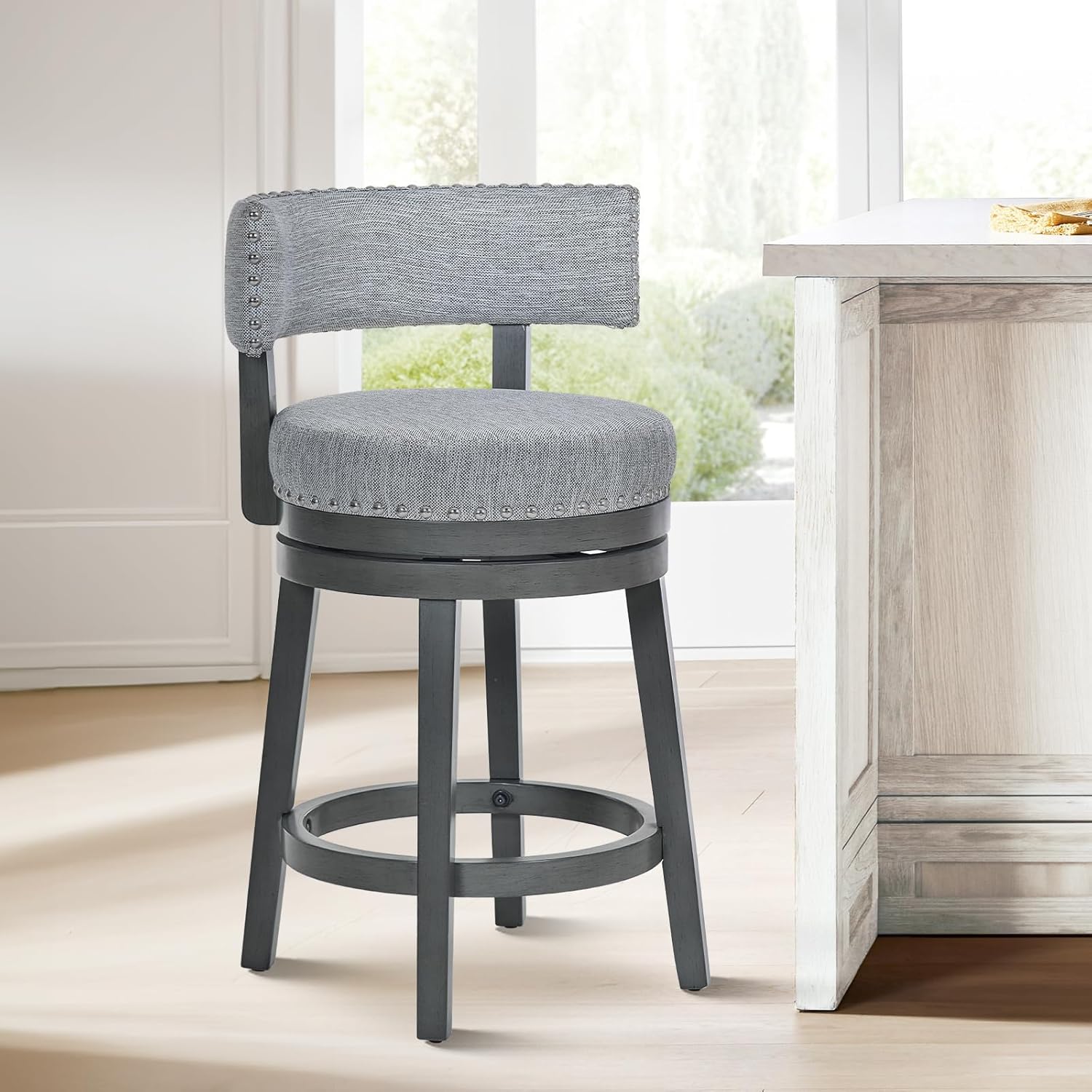 COLAMY Swivel Counter Height Bar Stools Set of 1, 25 Inch Modern Upholstered Kitchen Island Barstools with Back, Wood Swivel Bar Chairs for Counter Bar Dining Room, Grey