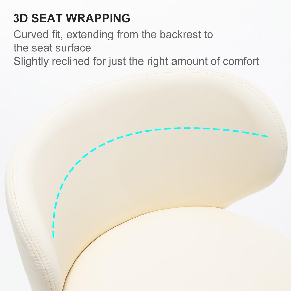 Stainless Steel Bar Stools,Grade Modern Leather Bar Chair with Backrest,Swivel Adjustable Height for Kitchen Counter and Dining Room (White Leather-1pc)