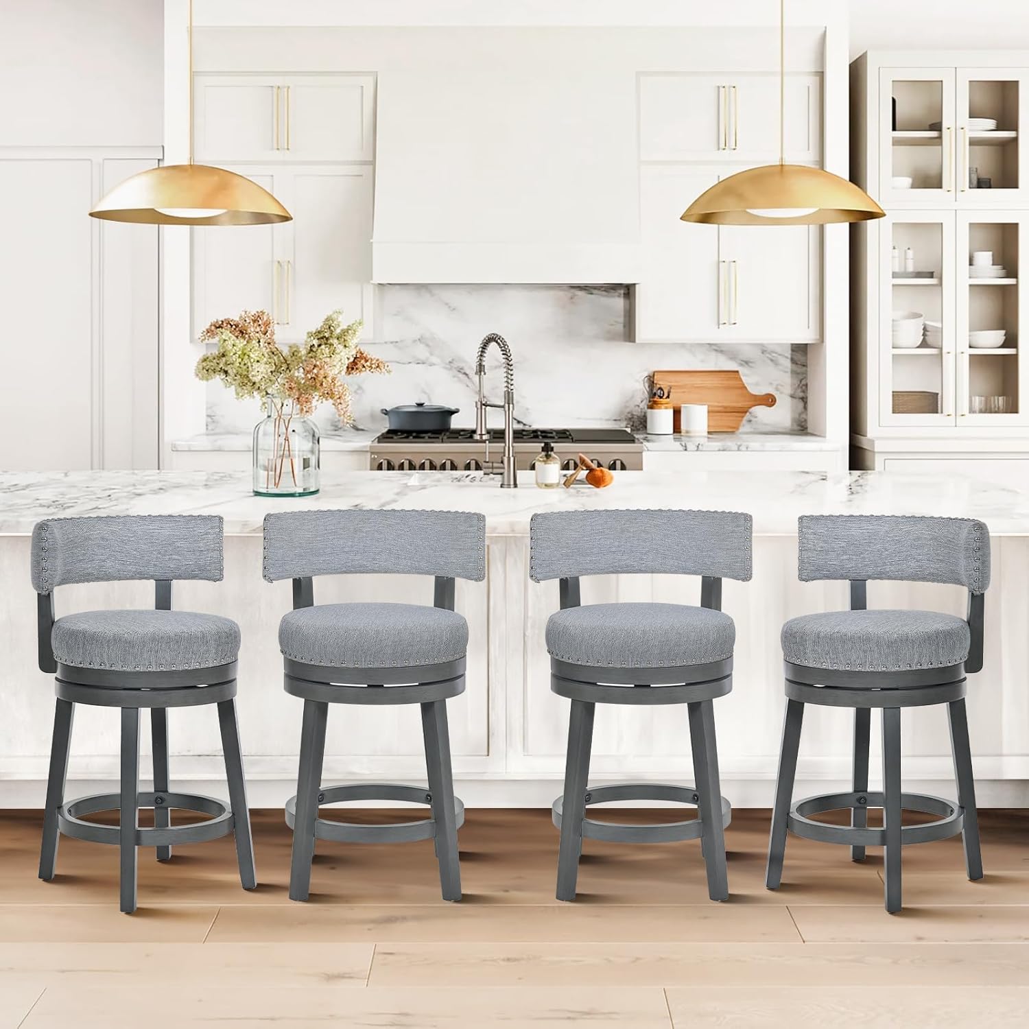 COLAMY Swivel Counter Height Bar Stools Set of 4, 25 Inch Modern Upholstered Kitchen Island Barstools with Back, Wood Swivel Bar Chairs for Counter Bar Dining Room, Grey