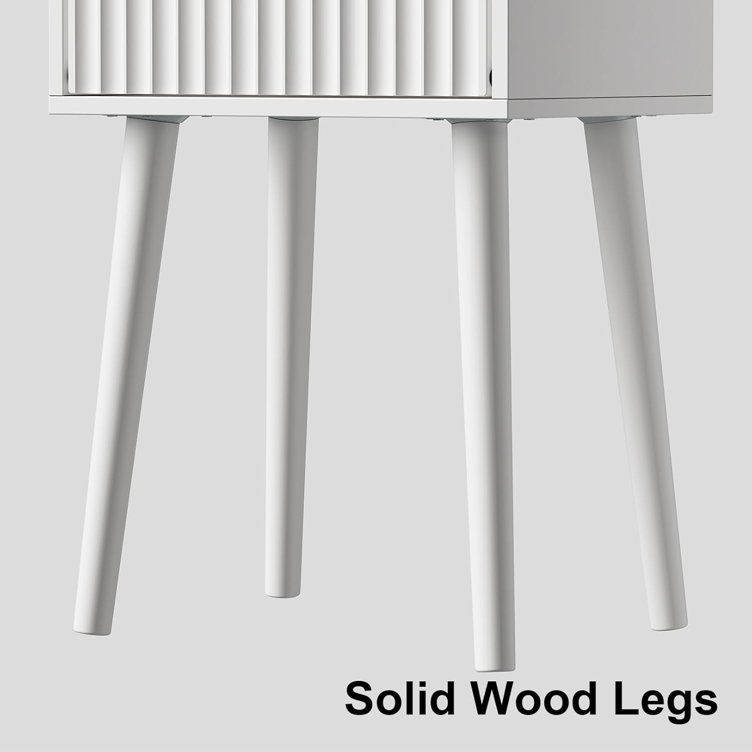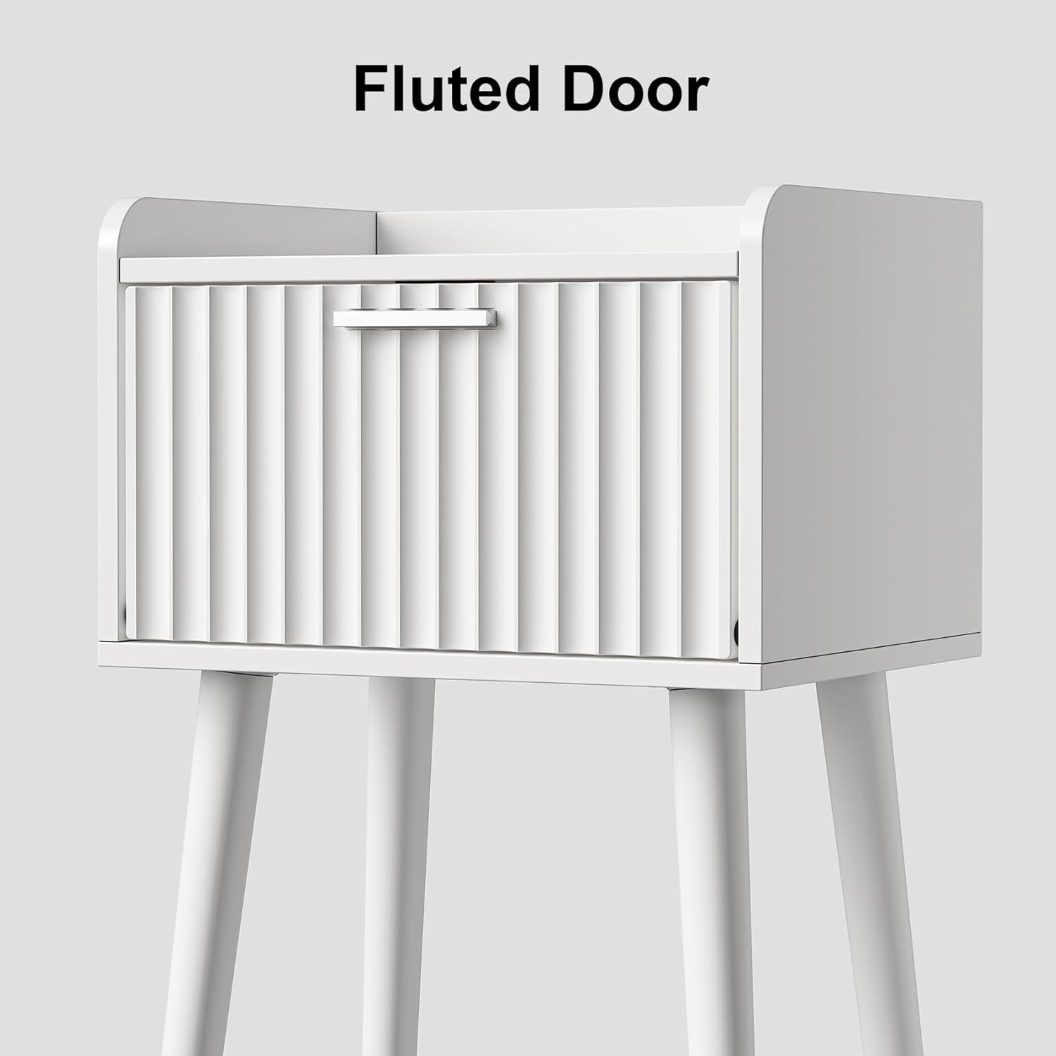 LAATOOREE Nightstand Set of 2, Small Bed Side Table with Fluted Door, End Table with Solid Wood Legs, Mid-Century Bedside Table for Bedroom Small Space