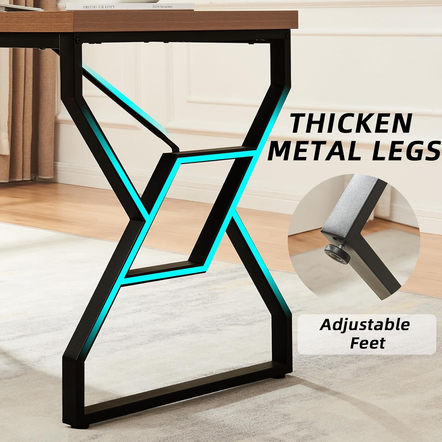 - Sturdy Construction: The geometric side-frame design replaces traditional table legs, offering enhanced stability for your home computer desk. Perfect for large office desks, this innovative structure expands the support surface area while maintaining a sleek profile. Reinforced with support rods and adjustable feet, it ensures unwavering balance—ideal for work desks on uneven floors.