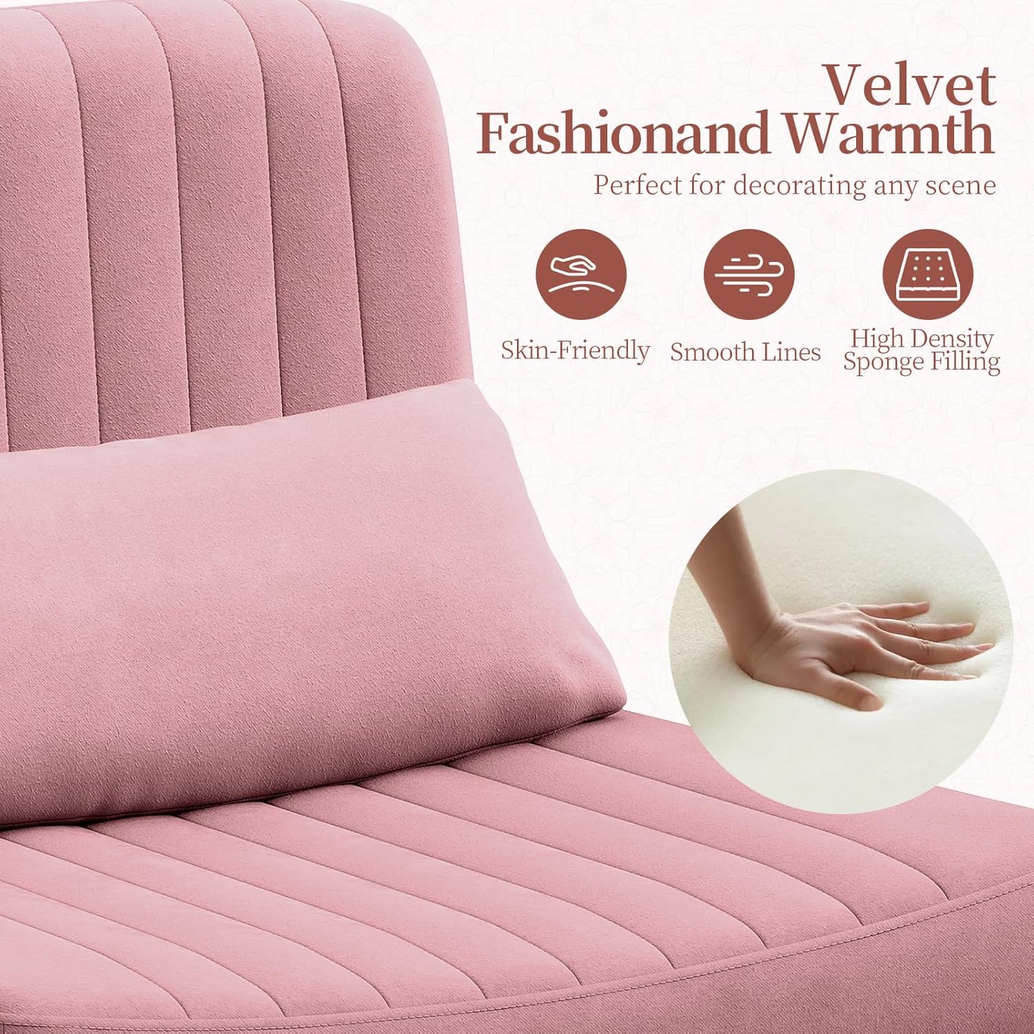 - [Durable and Sturdy]---Seat Size: 15.75"D x 26.38"W, wide enough for any postures. The home office chair holds up to 250 lbs of weight with its a solid and sturdy frame and durable base. Long lasting, it will be a good investment for home and office. Upgrade your workspace with this contemporary armless accent chair. Upholstered in premium velvet and featuring a wide, L-shaped seat , it combines luxury with comfort, making it a perfect fit for any modern home decor.