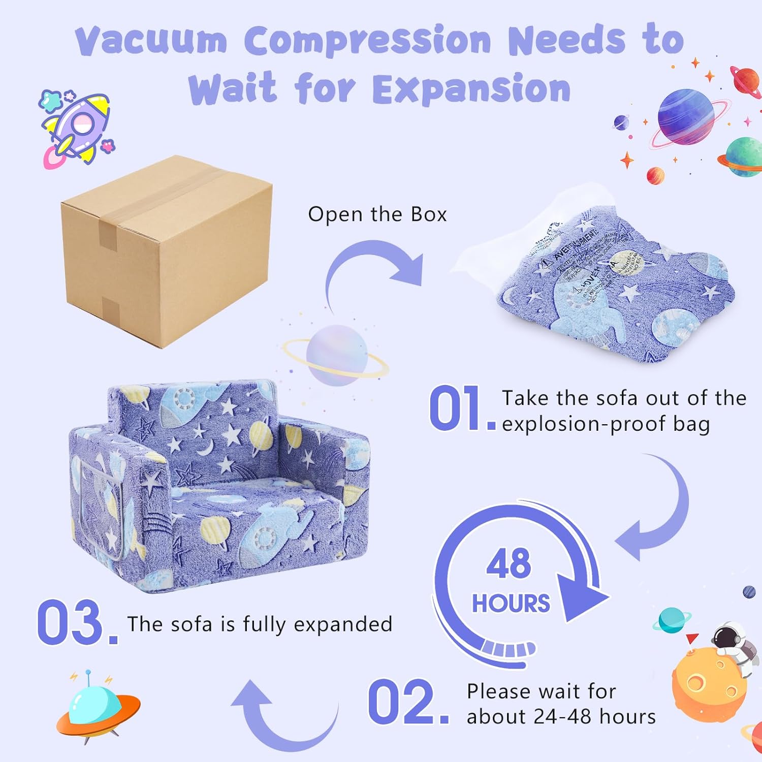 - 【Encourages Learning Through Play】Designed with vibrant space graphics, this sofa inspires curiosity about the universe while supporting early STEM interest. A fun way to introduce science concepts through everyday play