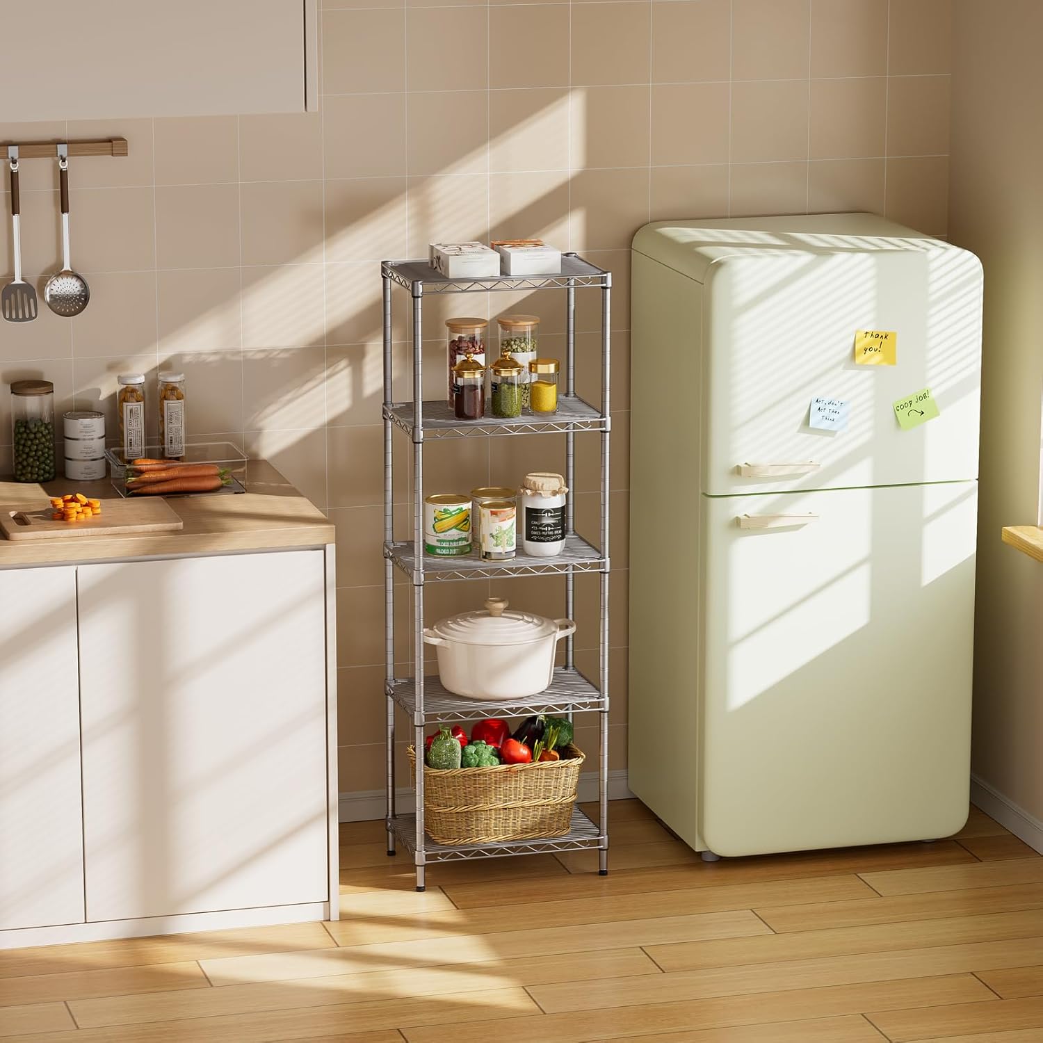 SINGAYE 5 Tier Shelf Wire Shelving Adjustable Storage Shelves Rack Standing Units for Kitchen Closet Laundry Bathroom Organizers Metal Pantry Narrow Mesh Gaps 10" D x 16" W x 55" H Gray