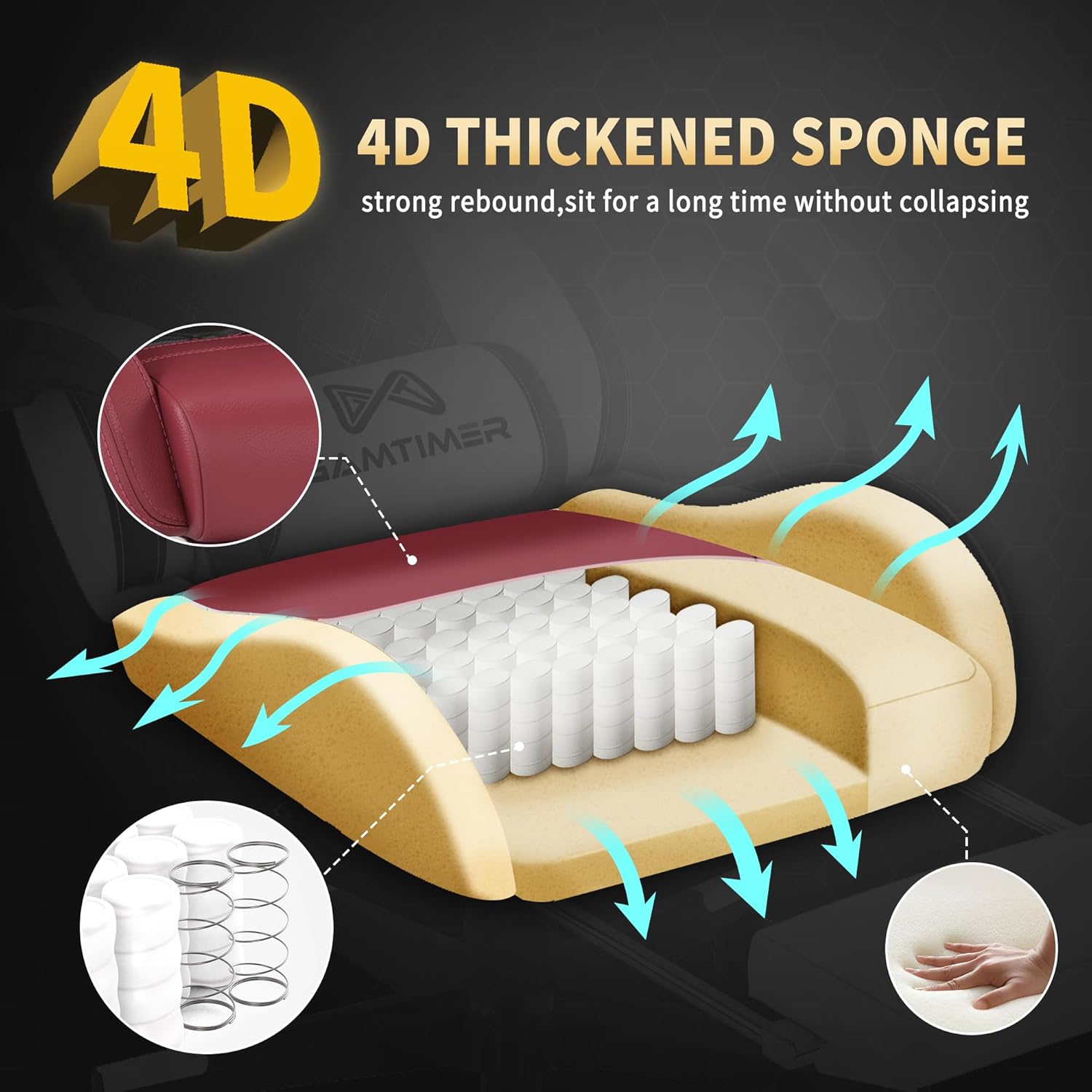 - Ergonomic Backrest: The Gamtimer gaming chair features a wide backrest that provides exceptional support for your back and spine, making it ideal for users with heavier builds. It effectively alleviates pressure, ensuring lasting comfort and stability during extended gaming or work sessions.