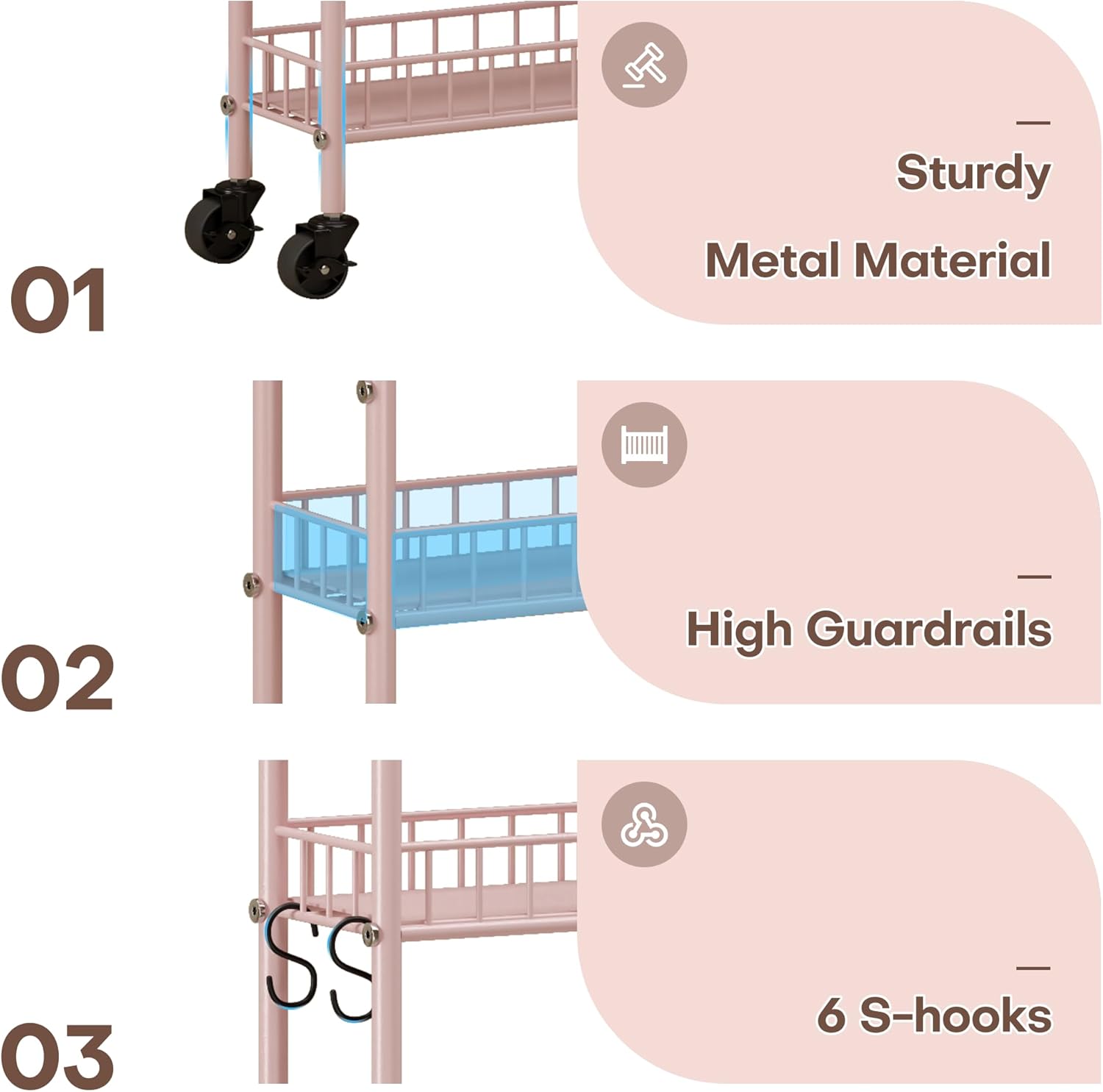 - MULTIFUNCTIONAL STORAGE CART: This rolling utility cart can be placed in the kitchen, living room, toilet, study and other places. You can use it to place daily items, spices, toiletries, books and other things. Improve the cleanliness of your home and don't worry about missing things.