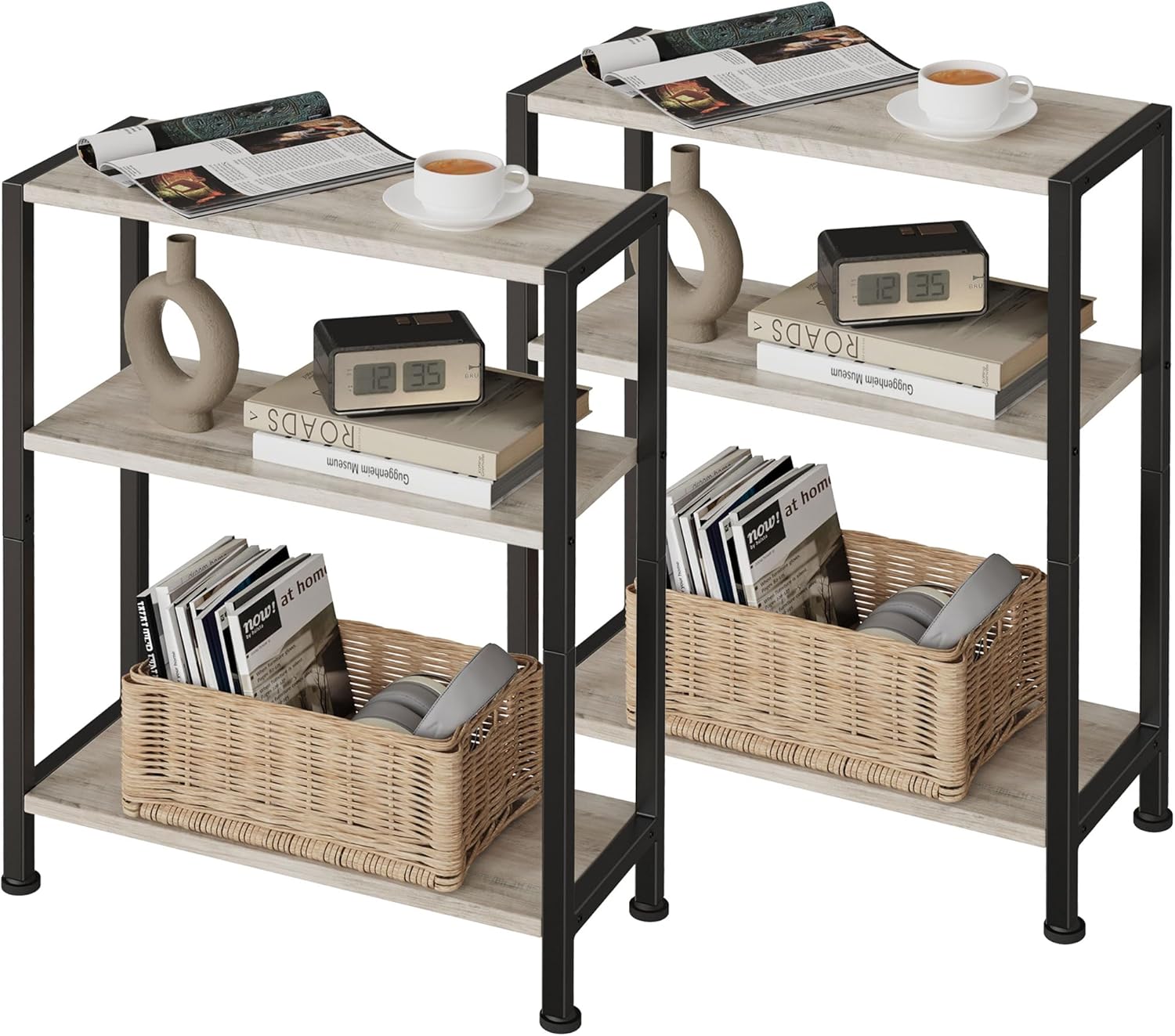 3-Tier Side Table Set of 2, Small End Table, Sofa Side Table for Narrow Spaces, Slim End Table, Nightstand Table, for Living Room Bedroom Office, Greige
