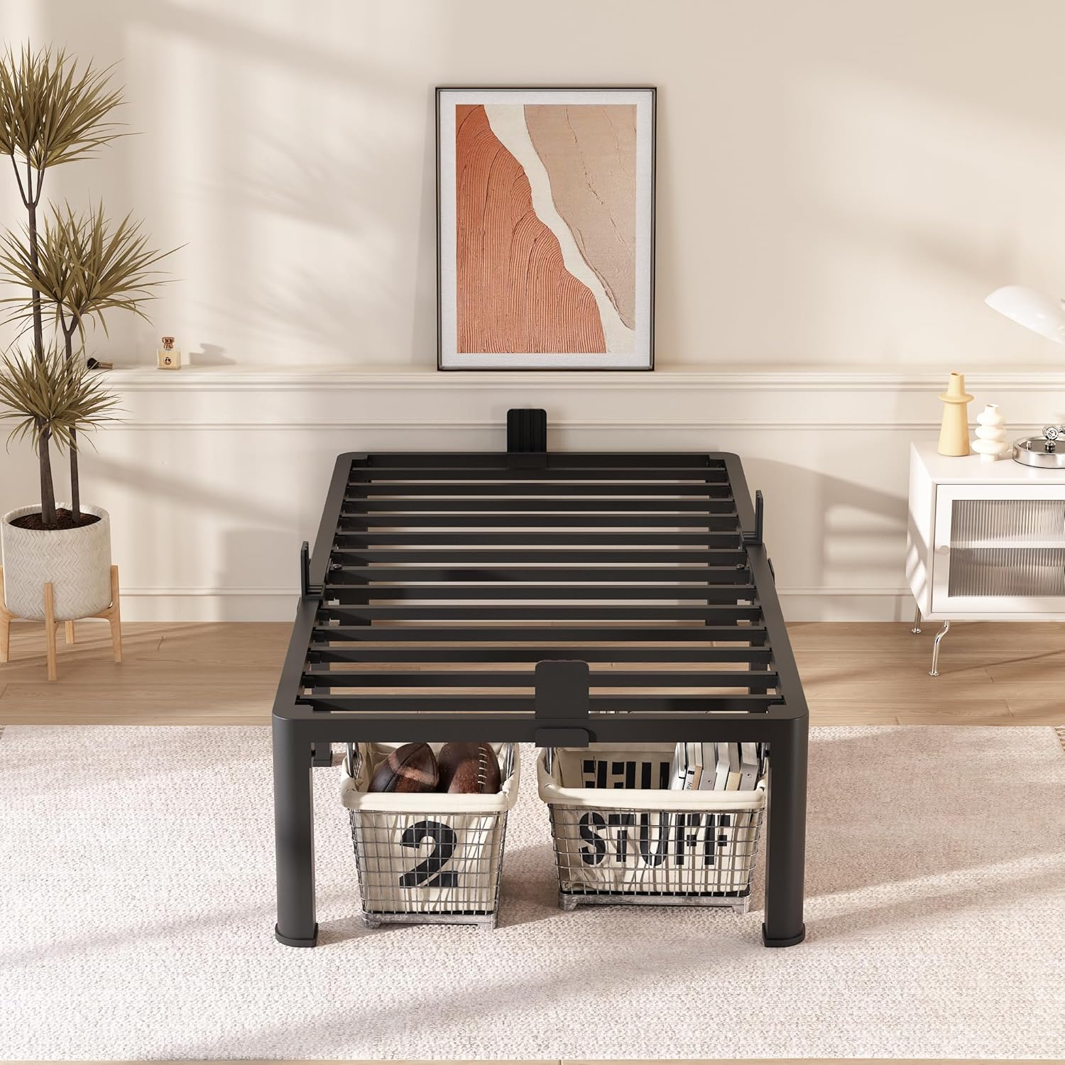 - Storage Space:16 inches high twin size bed frame with 14.4 inches of bed storage to store more debris.The black twin bed frame makes your room look more cleaner and tidier.
