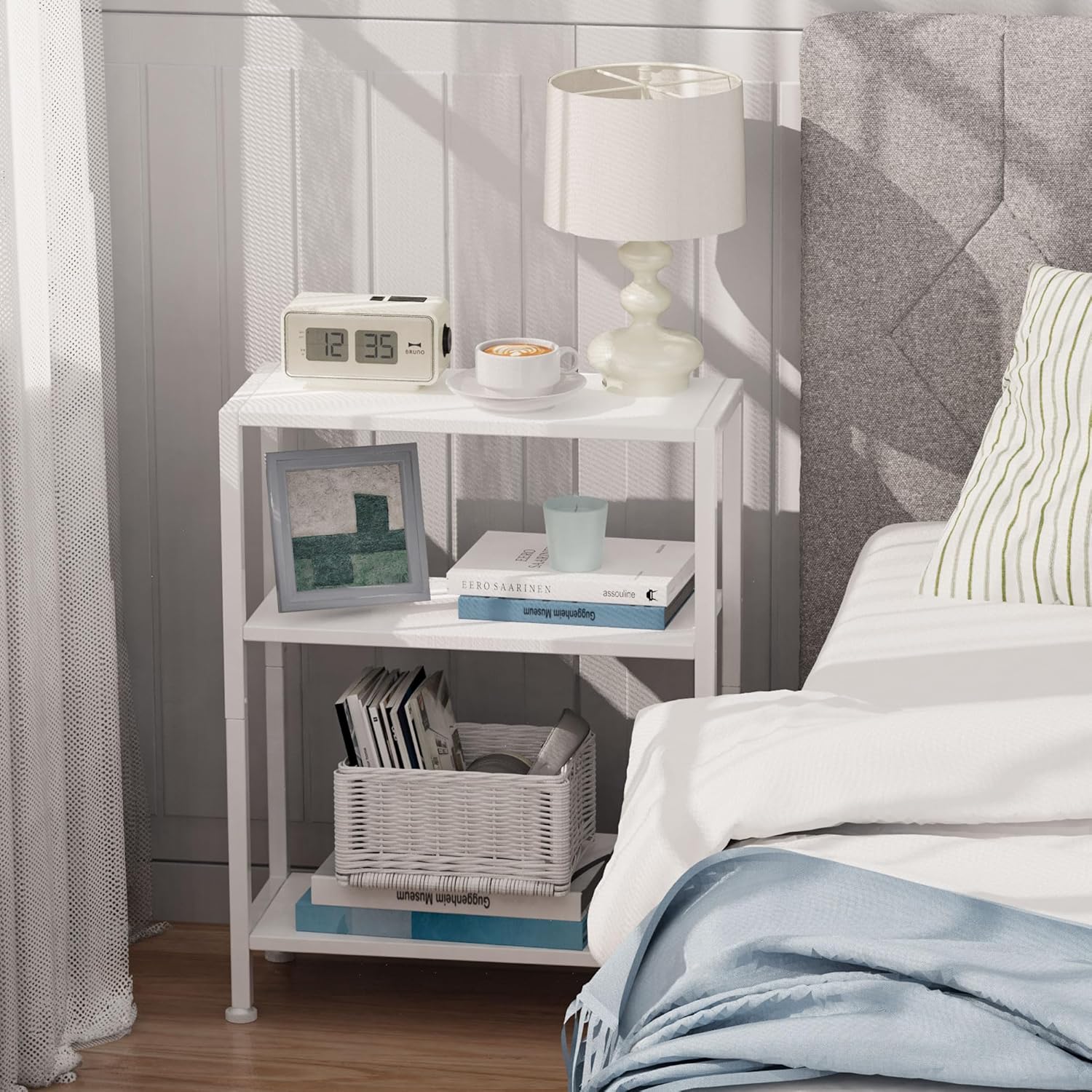 3-Tier Side Table Set of 2, Small End Table, Sofa Side Table for Narrow Spaces, Slim End Table, Nightstand Table, for Living Room Bedroom Office, White