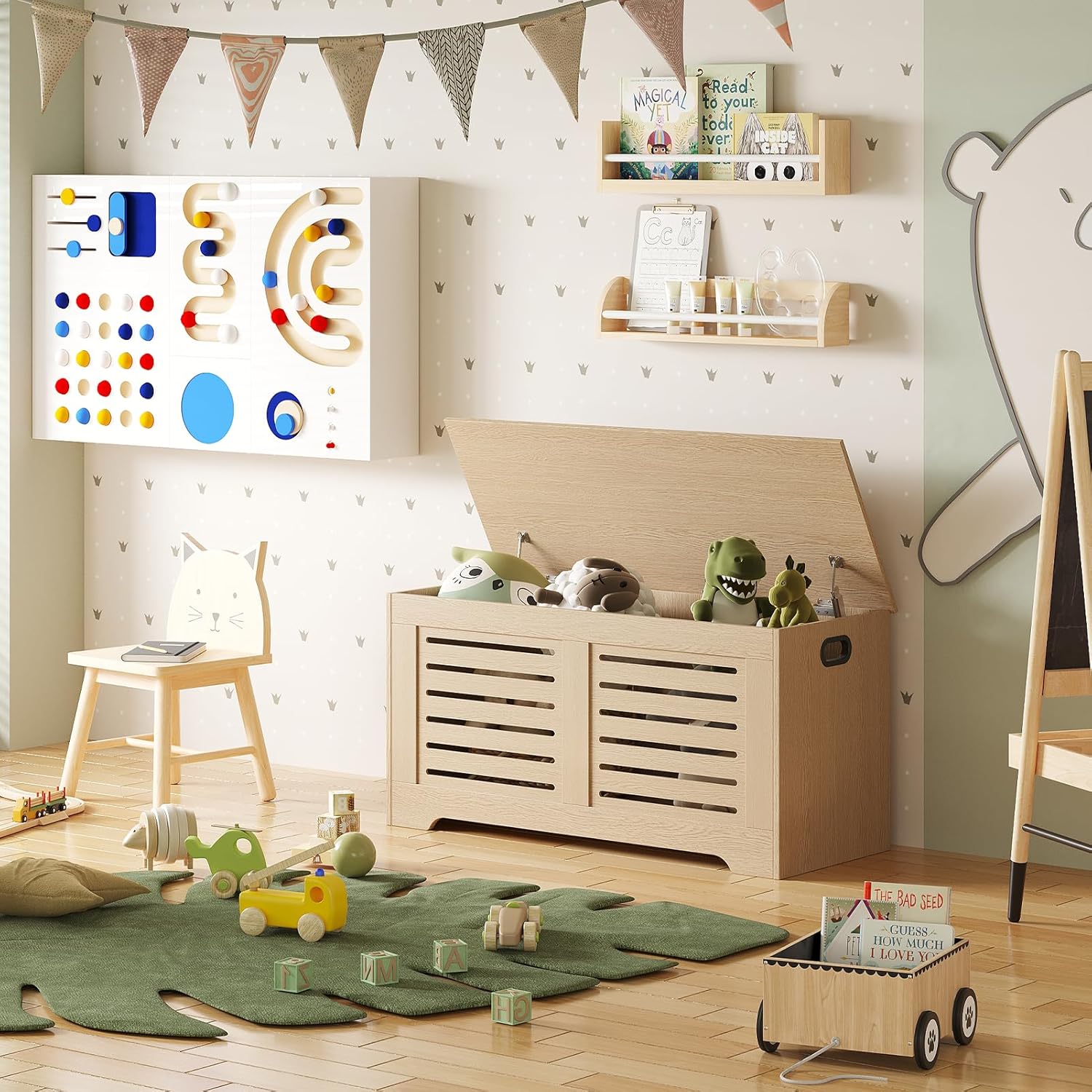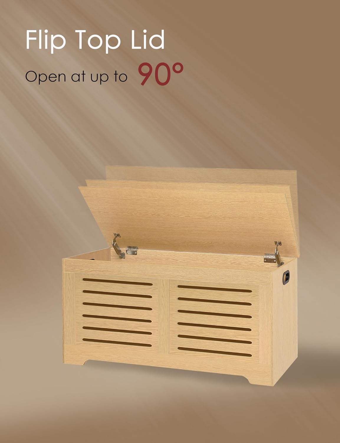 DINZI LVJ Storage Chest, 39.4”Wooden Storage Box with 2 Safety Hinges, Entryway Shoe Bench with Flip-Top, Farmhouse Style Trunk for Living Room, Bedroom, Play Room, Easy Assembly, Natural