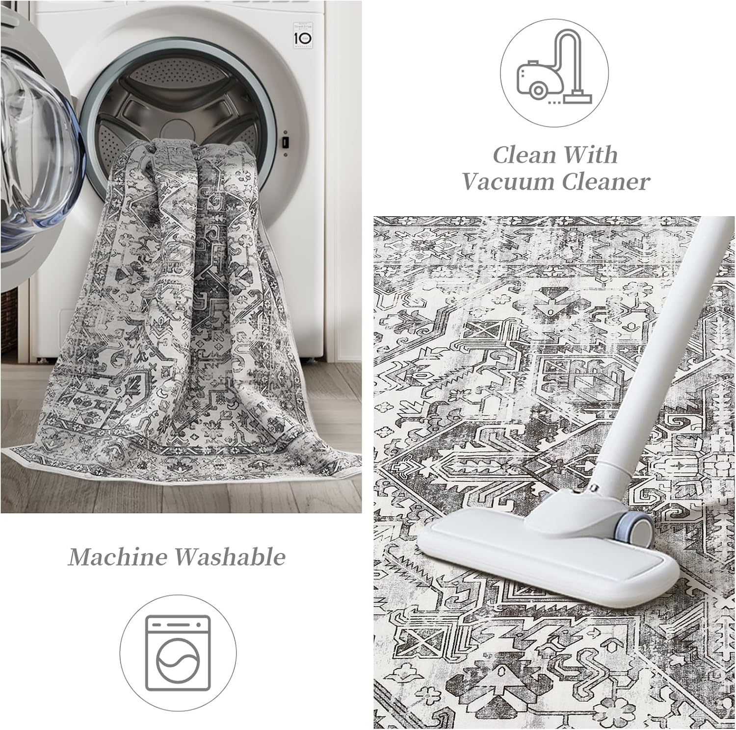 - EASY CARE & WASHABLE: This washable area rug is stain-resistant and won't easily trap dust or dirt. For daily maintenance, simply wipe the surface with a damp towel or use a vacuum. When deeper cleaning is needed, it can be machine washed to keep it looking fresh.