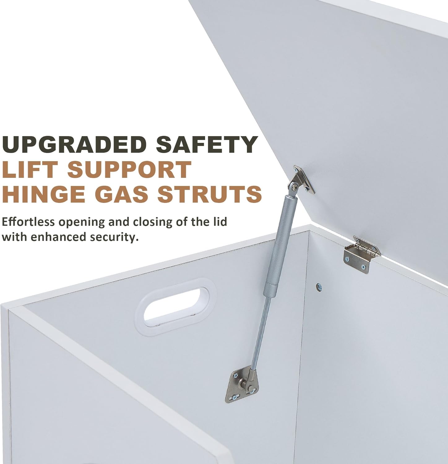 - 【 Upgraded Safety Lift Support Hinge】Stradier and safer, thanks to the upgraded support hinge, the lid of this storage chest can stay securely open at any angle—no slamming shut, it opens and closes slowly to avoid pinching fingers! U-shaped cut-out pull allow for easy opening of lockers and breathability of your stored items.