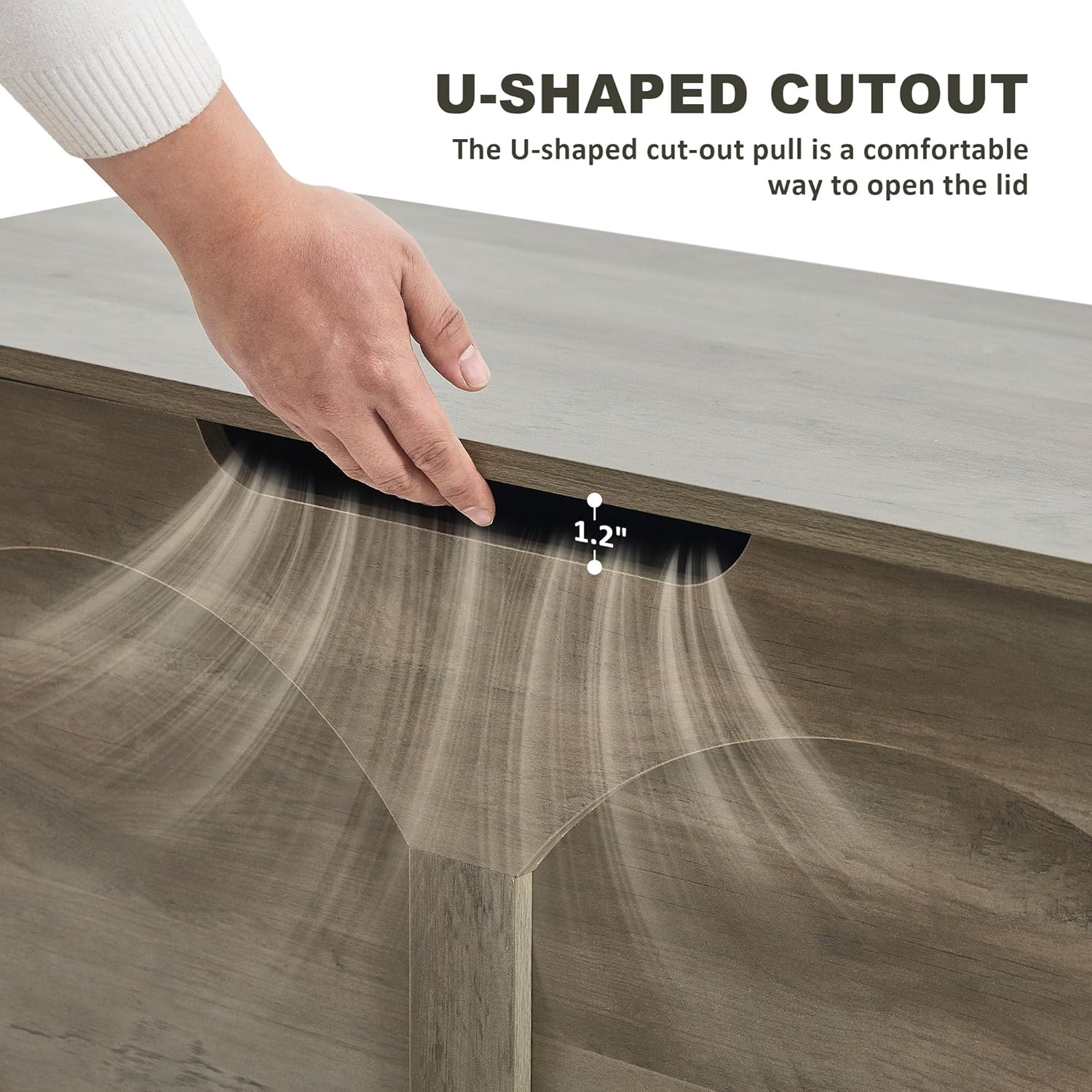 Storage Chest, 31.5" Retro Wooden Storage Bench, Entryway Storage Trunk, Supports 330 lb, Upgraded Safety Lift Support Hinge, Entryway Bench, U-Shaped Opening for Entryway Living Room, Grey