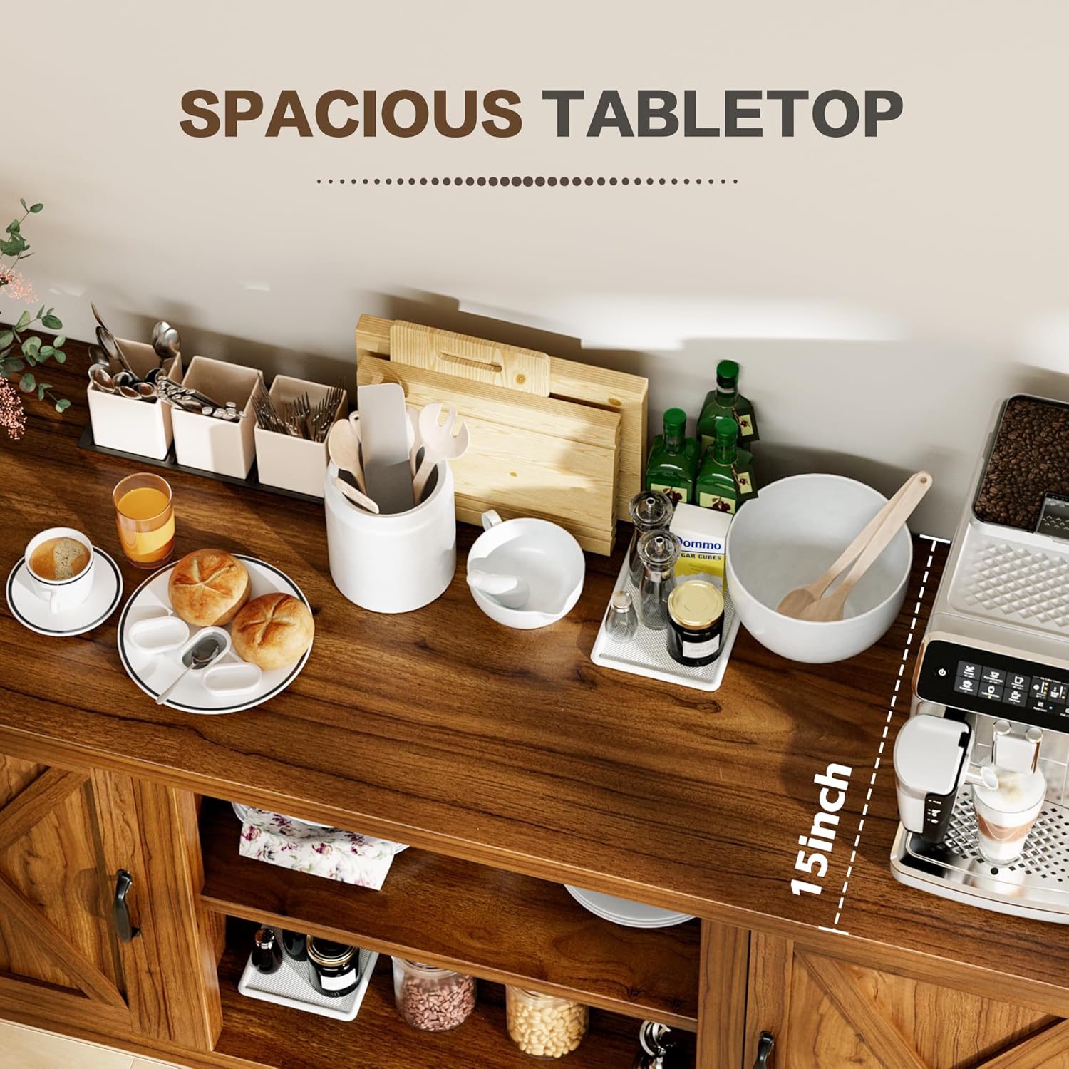 - Multifunctional Buffet: Not only can it be used as a storage cabinet, this cabinet can also be used as a sideboard, TV stand, coffee bar and wine bar counter, providing storage solutions for multiple scenarios.