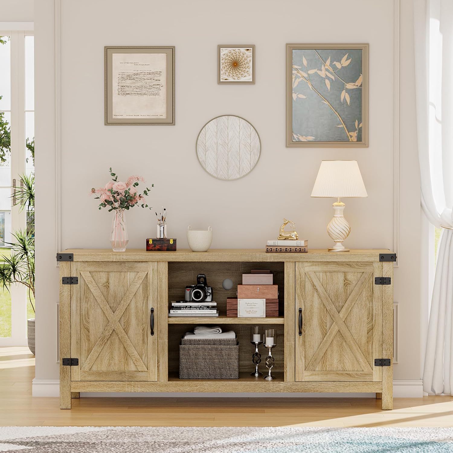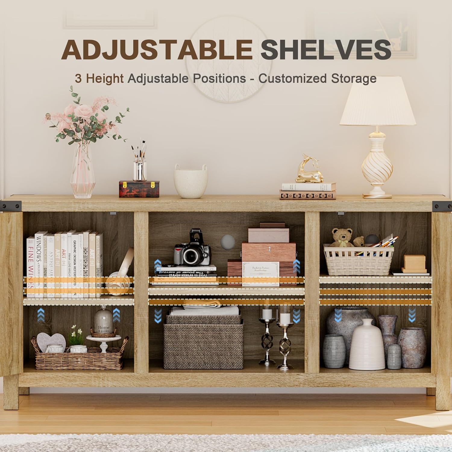 YESHOMY Farmhouse Buffet & Sideboard, 58" Kitchen Storage Cabinet with Adjustable Shelves & Doors, Wood Coffee Bar for Living Room, Entryway, Yellow