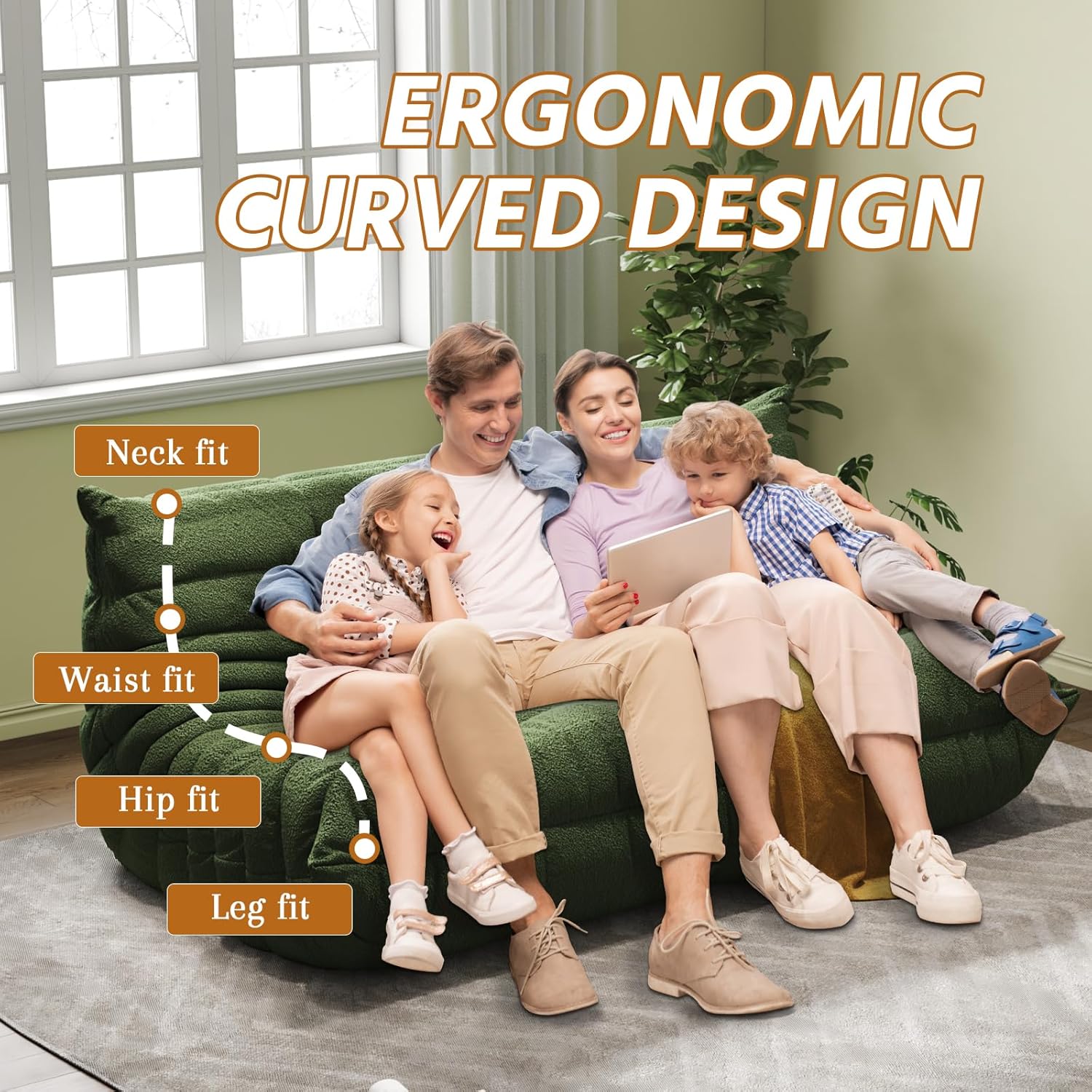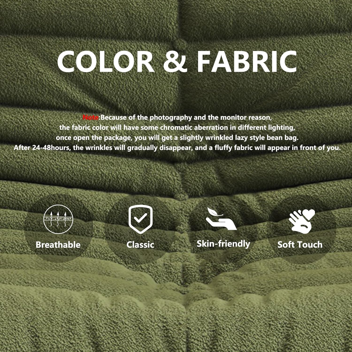Bean Bag Chairs for Adults, BeanBag Reading Chair Memory Foam Couch 3-Seater, Floor Chair Soft Teddy Material, Comfy Reading Nook Chairs for Bedroom Living Room Office (Green)