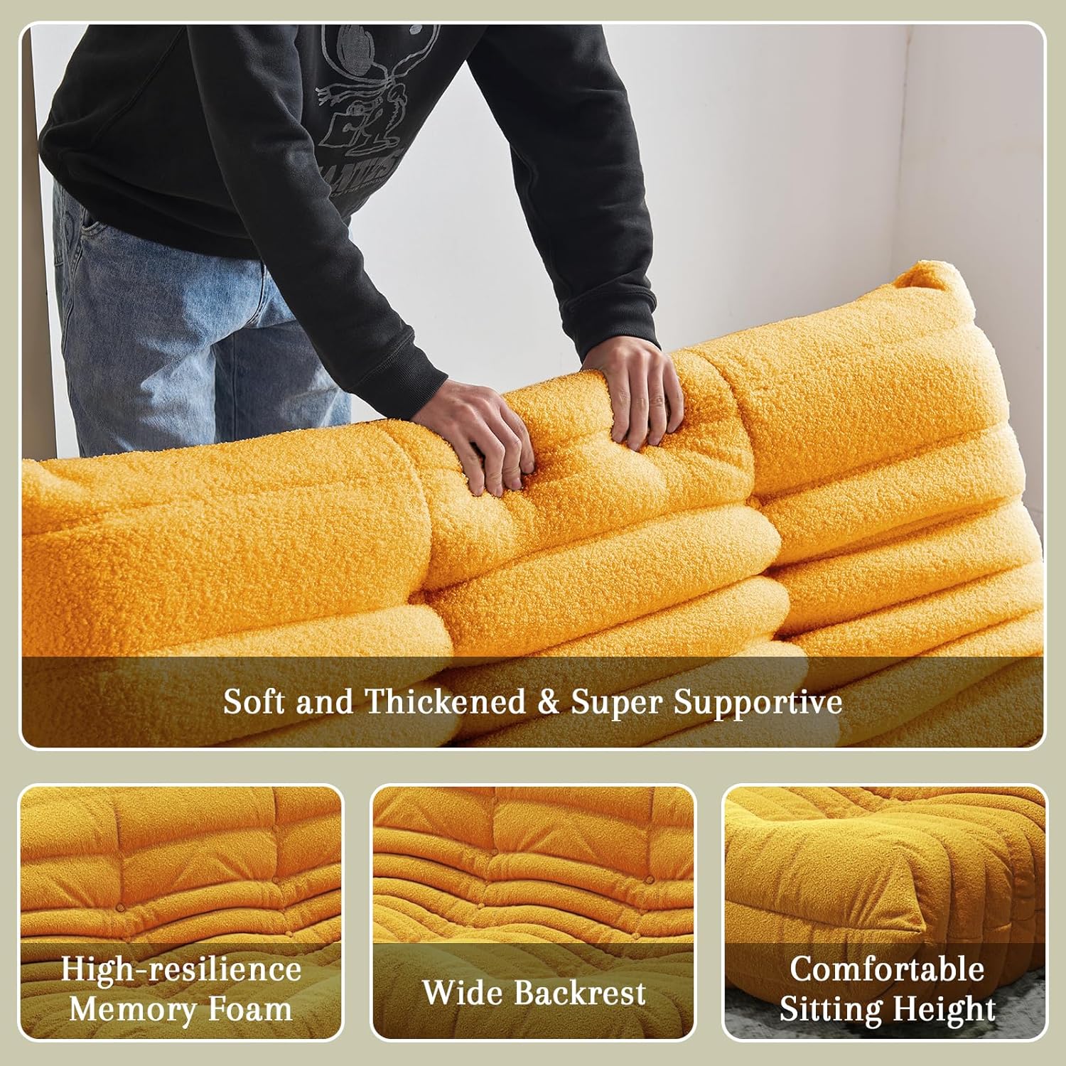 Bean Bag Chairs for Adults, BeanBag Reading Chair Memory Foam Couch 3-Seater, Floor Chair Soft Teddy Material, Comfy Reading Nook Chairs for Bedroom Living Room Office (Yellow)