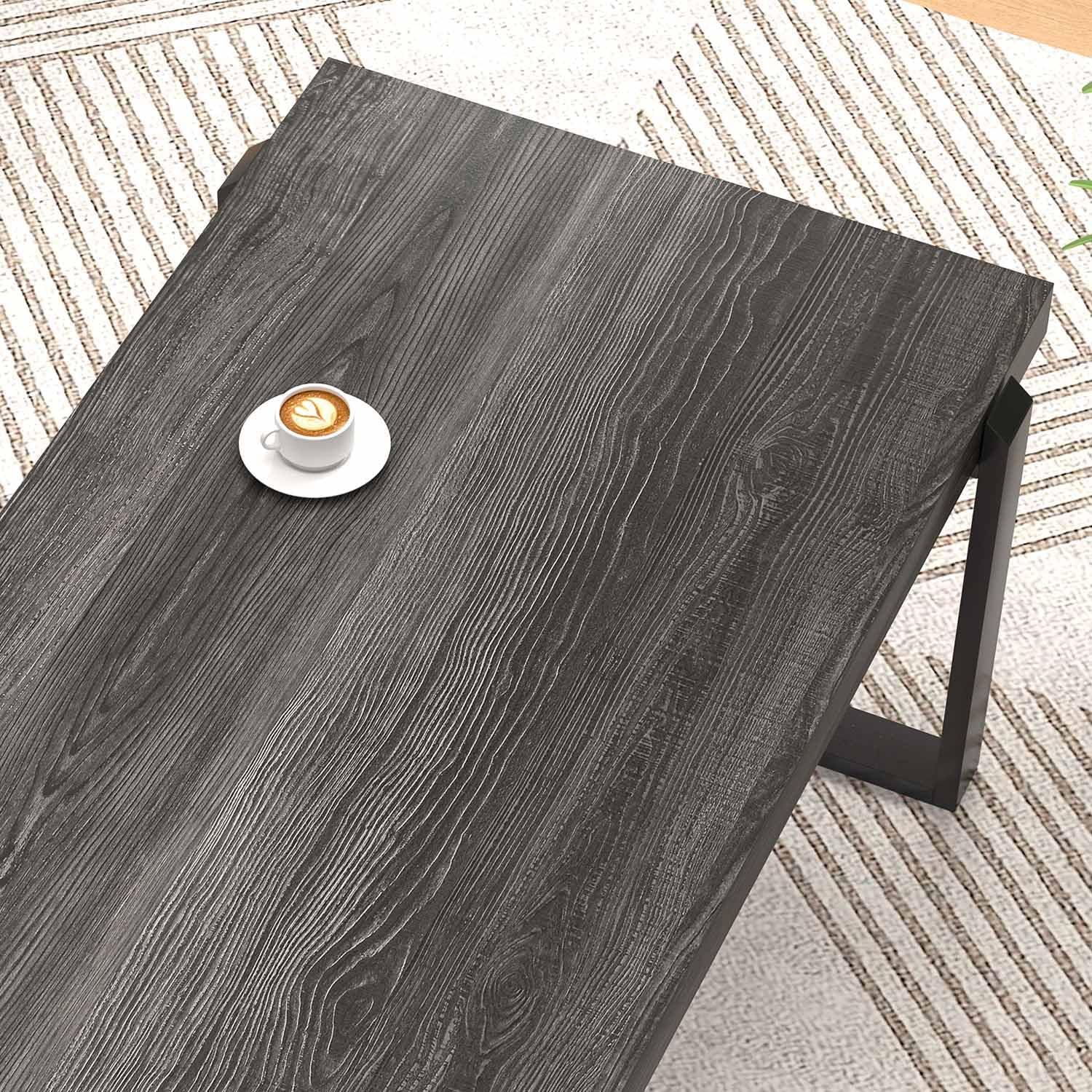 - Minimalist Elegance: This coffee table embodies modern design with its simple clean lines and dark grey wood grain surface. Its modern look complements various decor styles, from contemporary to industrial, offering a rustic touch to any space
