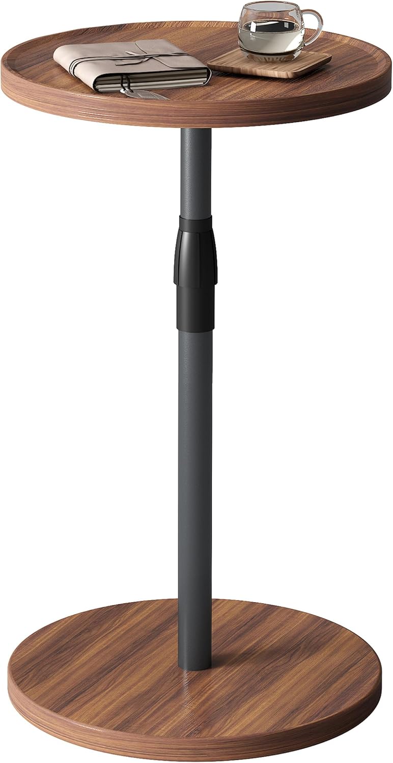 Adjustable End Table, Small Round Side Table, Drink Table for Small Spaces, Pedestal Nightstand for Living Room, Bedroom, Sofa Couch, Brown ET-010BR