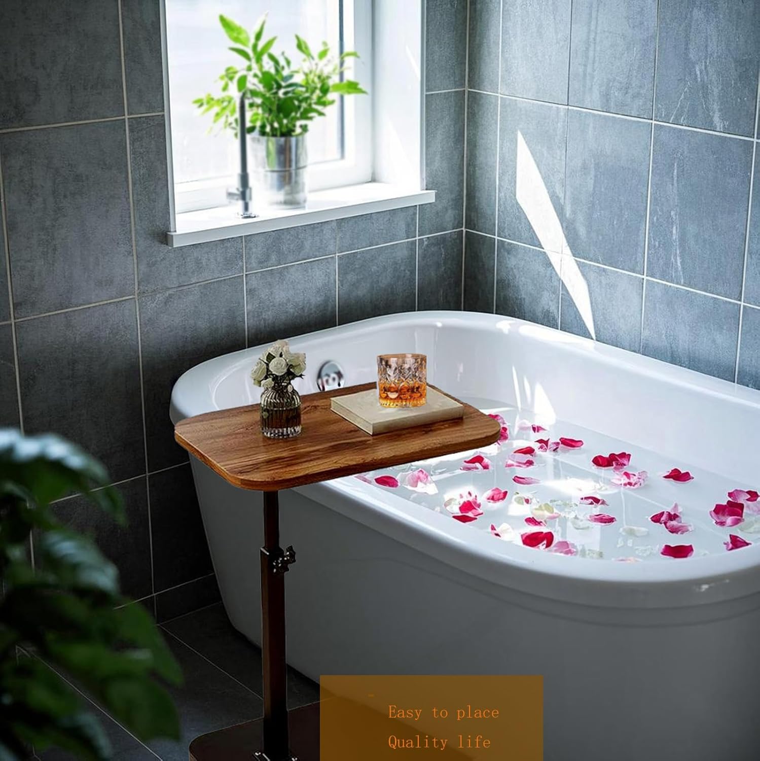 - ăMulti-functională This C-Shaped side table with modern style is suitable to be placed next to the bed/sofa/bathtub in the bathroom or in other small indoor spaces. It can hold daily items such as laptops, magazines, coffee cup,snacks, and also serve as a perfect interior decoration