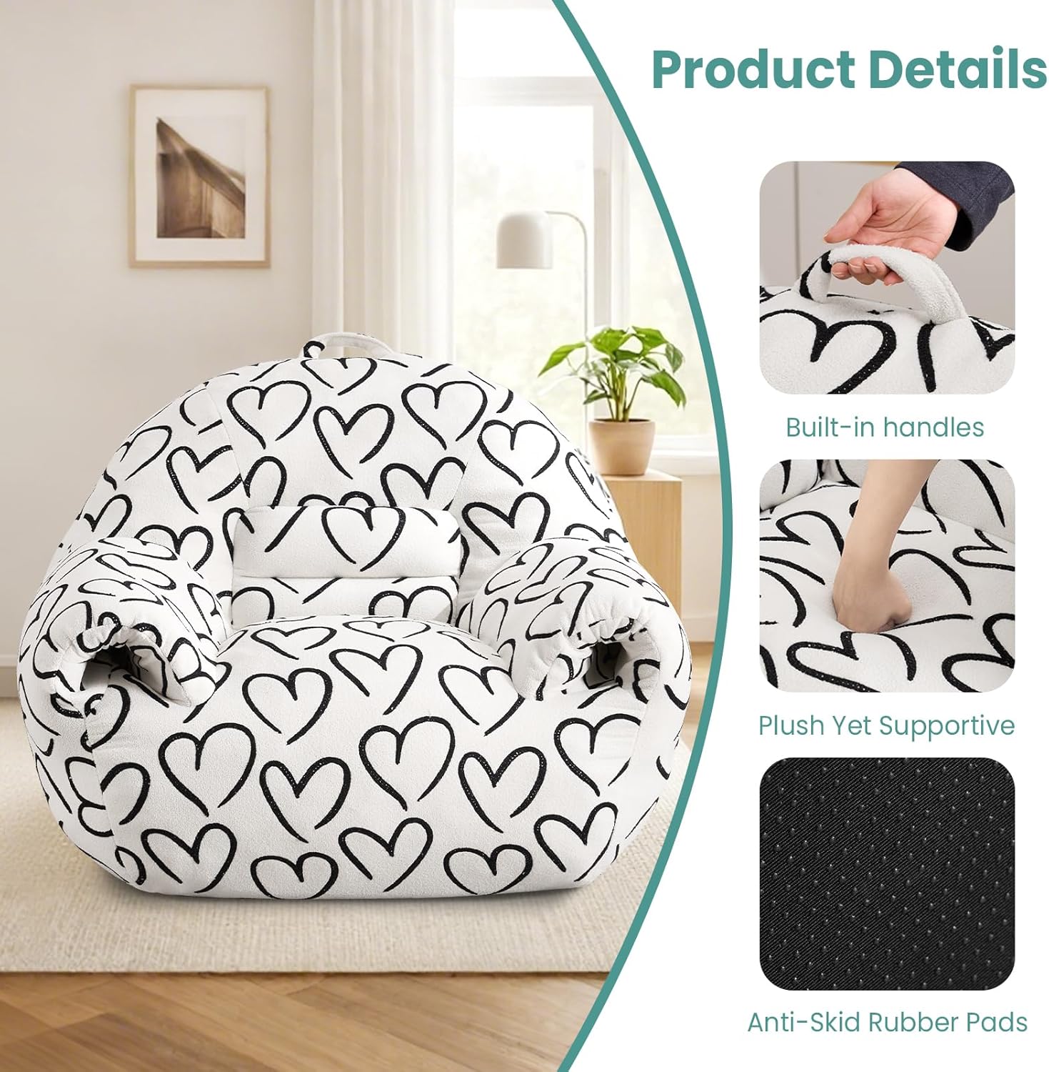 - 【Beanbag Chair Design】Designed for comfort, this bean bag Couchs features a reinforced top handle for easy mobility, an anti-skid base for stability, multi-functional armrests with storage- perfect for stashing remotes or magazines. Every detail is designed for maximum comfort and convenience.