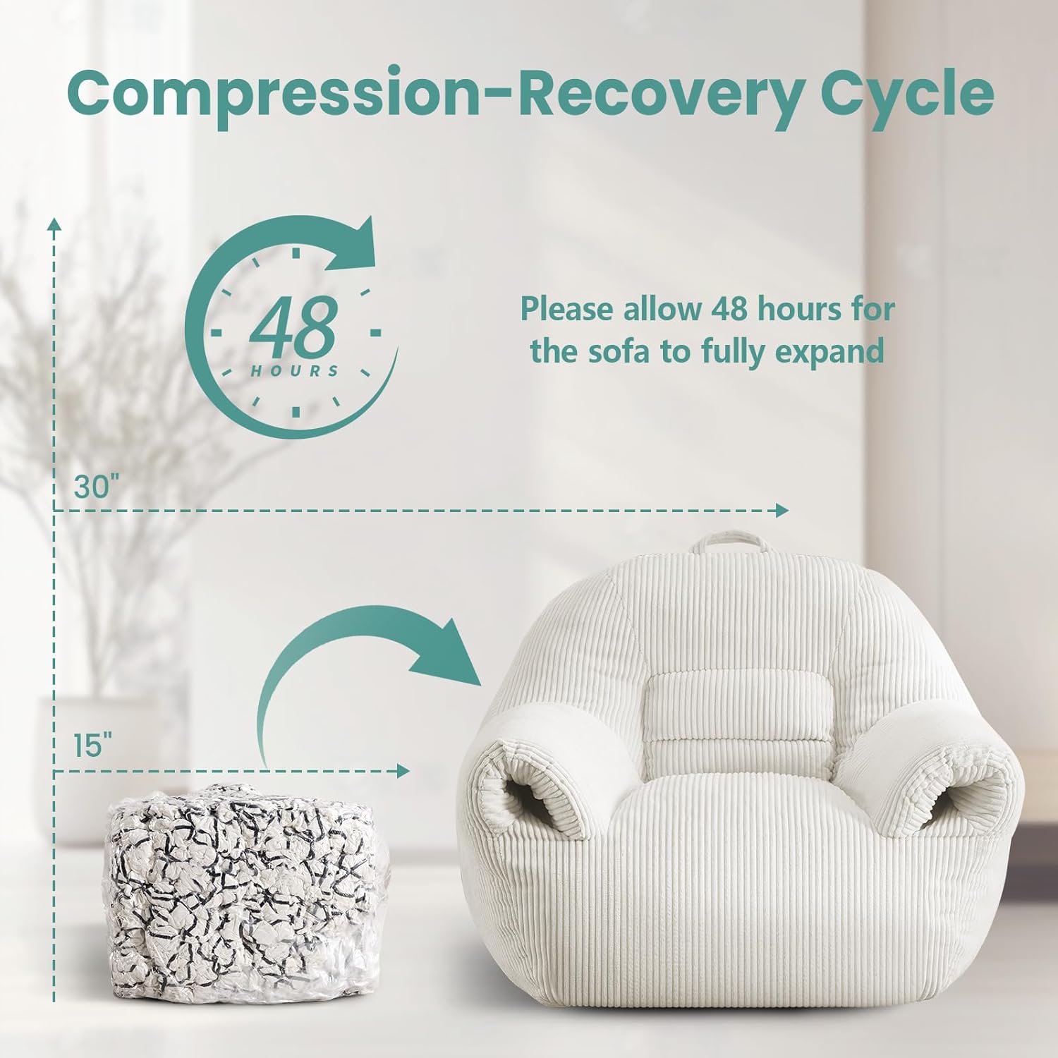 - 【No Assembly Required】The Compression Beanbag Sofa with ottoman features vacuum-sealed packaging with dual protective layers. After removing the compression bags, simply allow 48-72 hours for complete expansion. For optimal restoration, gentle patting helps achieve perfect Beanbag Sofa Chair form.