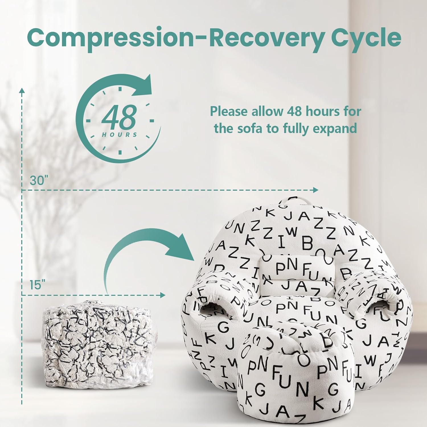 DAICO Bean Bag Chairs for Adults Comfy Accent Chair with Ottoman Floor Sofa Beanbag Couch with Armrests White Single Lazy Sofas with Foam for Living Room Reading Bedroom Gaming (Letter Pattern)