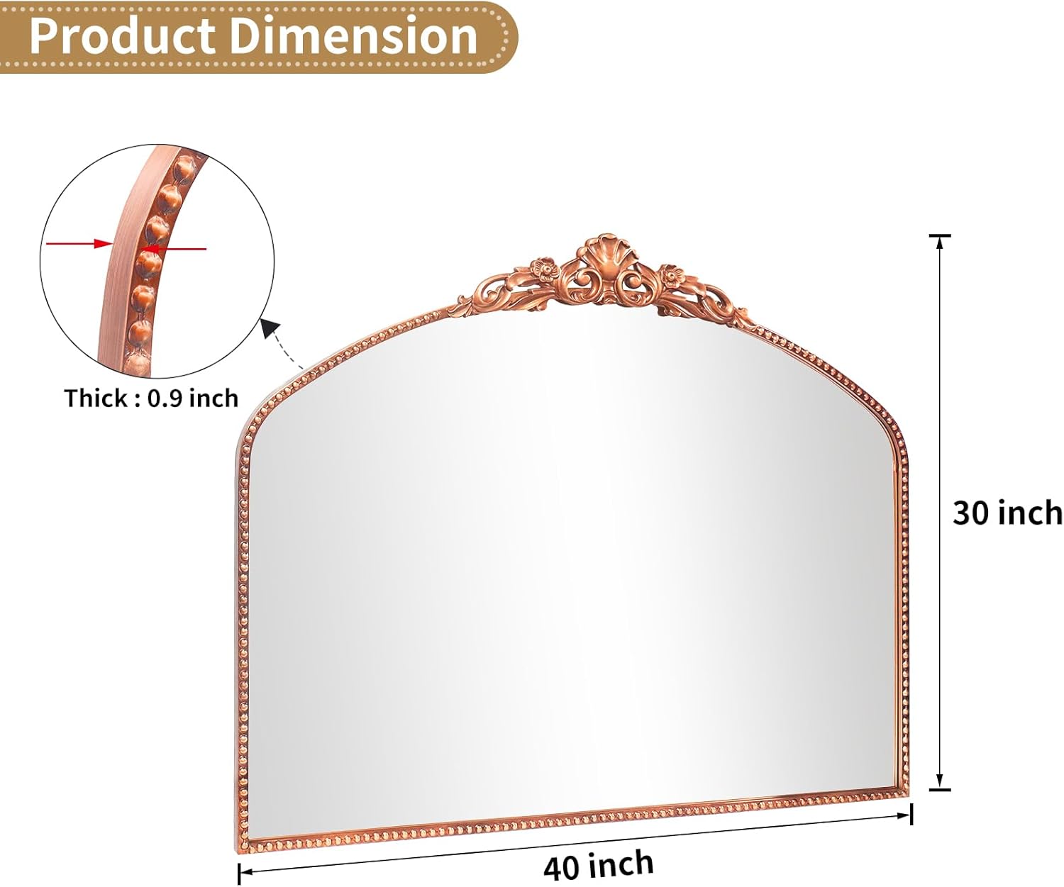 - Dimension - Antique Baroque Arched Mirror with frame 40"X30"