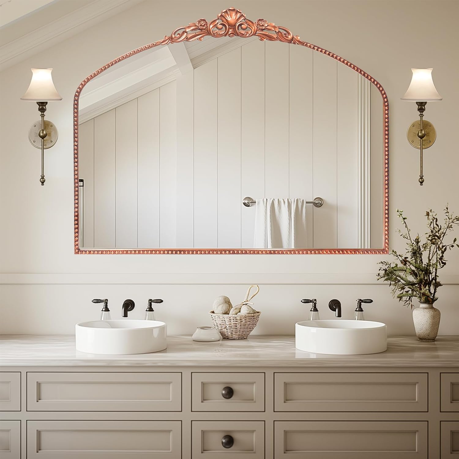 - Barque Style- Its ornate design, antique gold finish, and impeccable craftsmanship make it the perfect addition to any room. A statement piece that combines antique elegance with modern style. French country mirror will suitable for fireplace, bathroom, entryway, living room, bedroom, powder room, hall,and more.