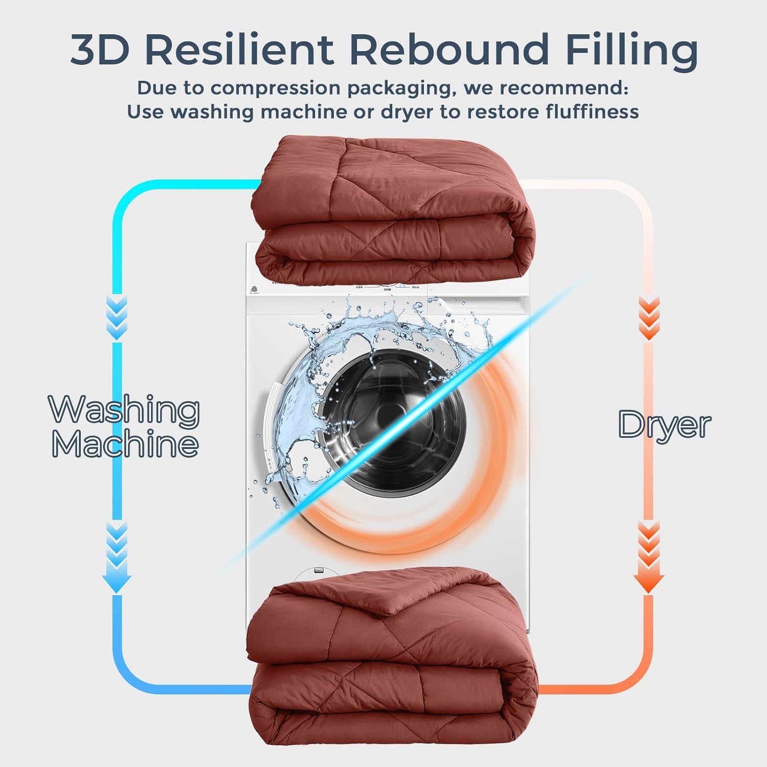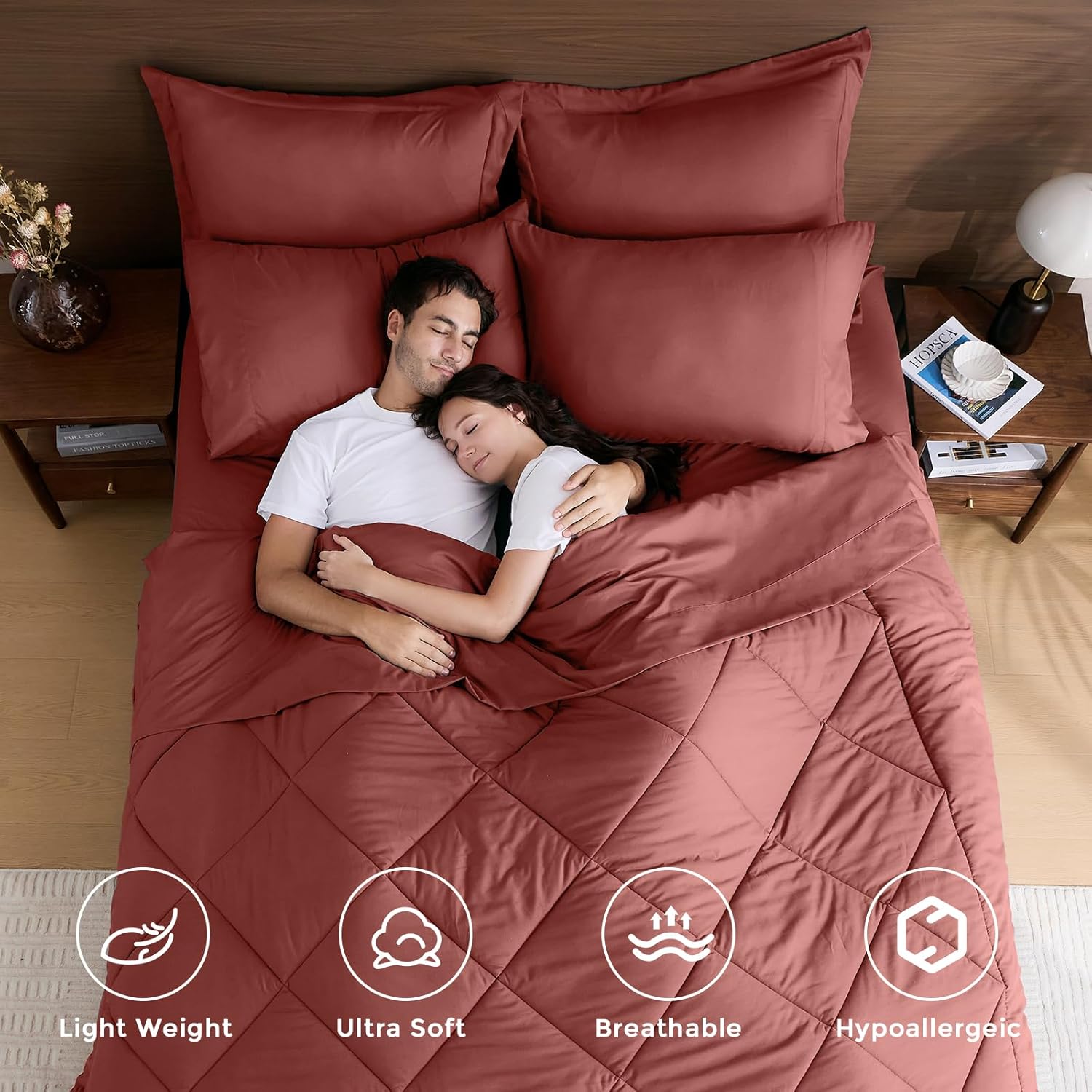 HEVUMYI Terracotta Cali-King Comforter Set - 7-Piece All Season Bed in a Bag Cali-King, Ultra Soft Bedding Set with Comforter, Flat Sheet, Fitted Sheet, Pillowcases, Pillow Shams
